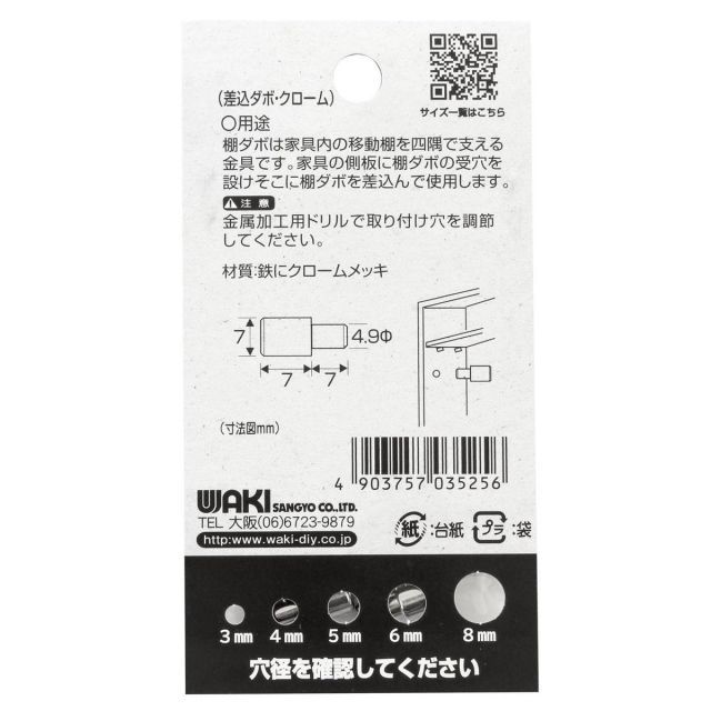 和気産業(Waki Sangyo) 差込ダボ 棚 棚受け 家具 4個入 クローム 5mm ML525