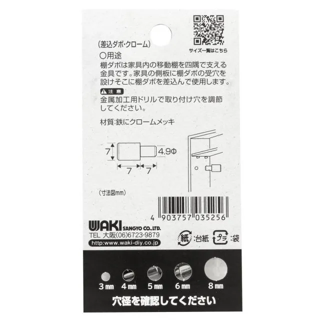 ◆商品名:和気産業(WakiSangyo)差込ダボ棚棚受け家具4個入クローム5mmML525 製品型番:ML525 色:ブラック 梱包サイズ:1.9x5.6x.7cm 商品の重量:2g キャビネット・本箱・水屋等の棚受。下穴をあけて差し込んで使用。 商品番号:20260217102009_168