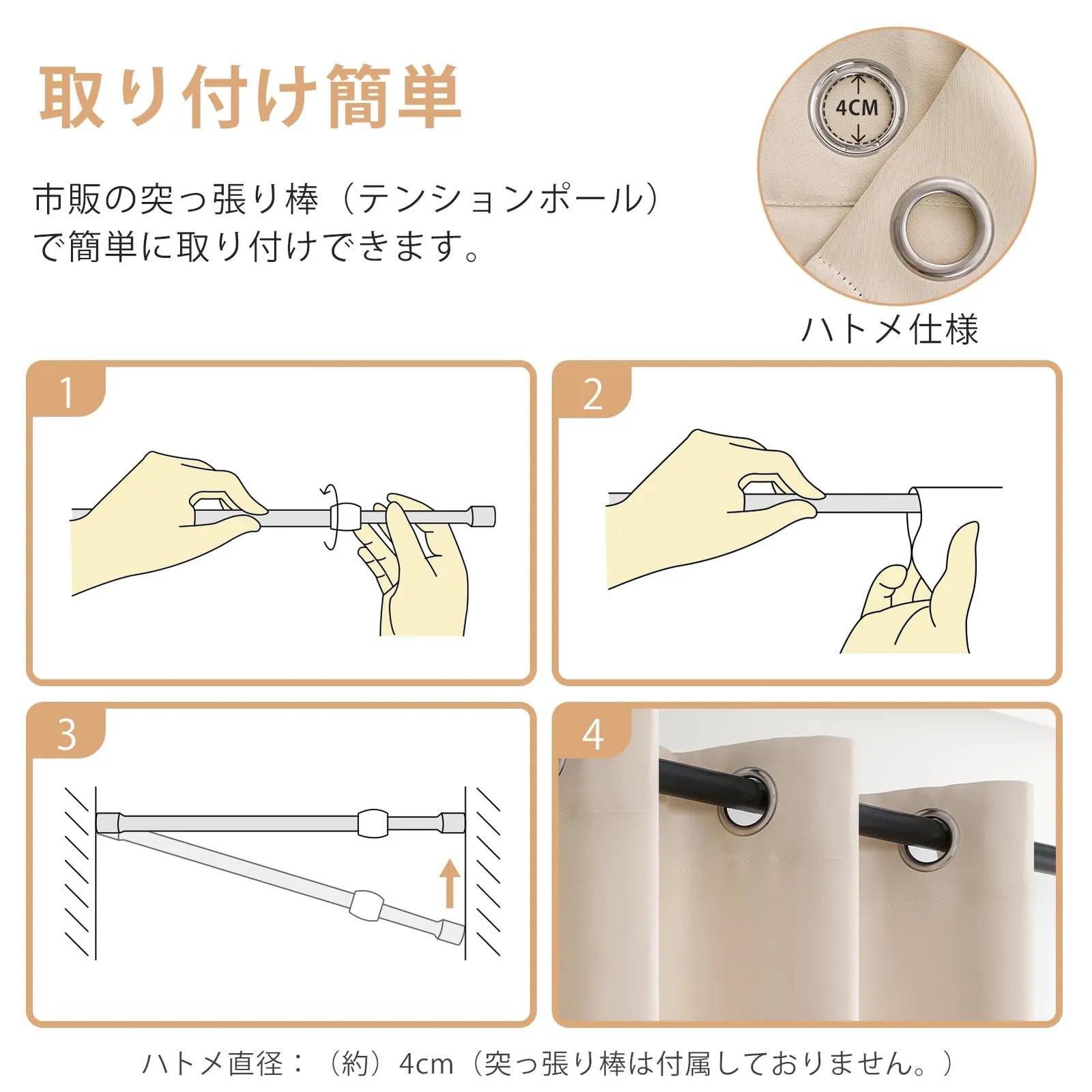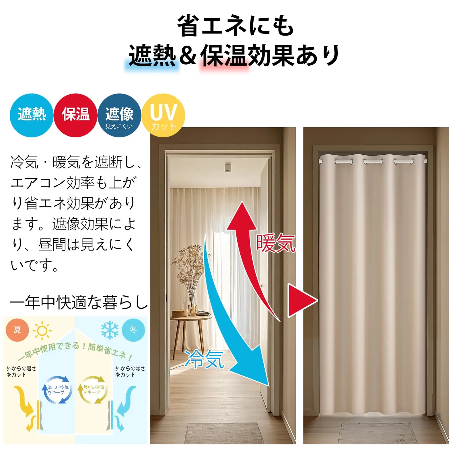 Topfinel カーテン 遮光 間仕切りカーテン 断熱 幅100cm 丈180cm 1枚入り ベージュ ハトメ型 突っ張り棒 カーテン 仕切りカーテン ドアカーテン 目隠し 玄関 キッチン リビング