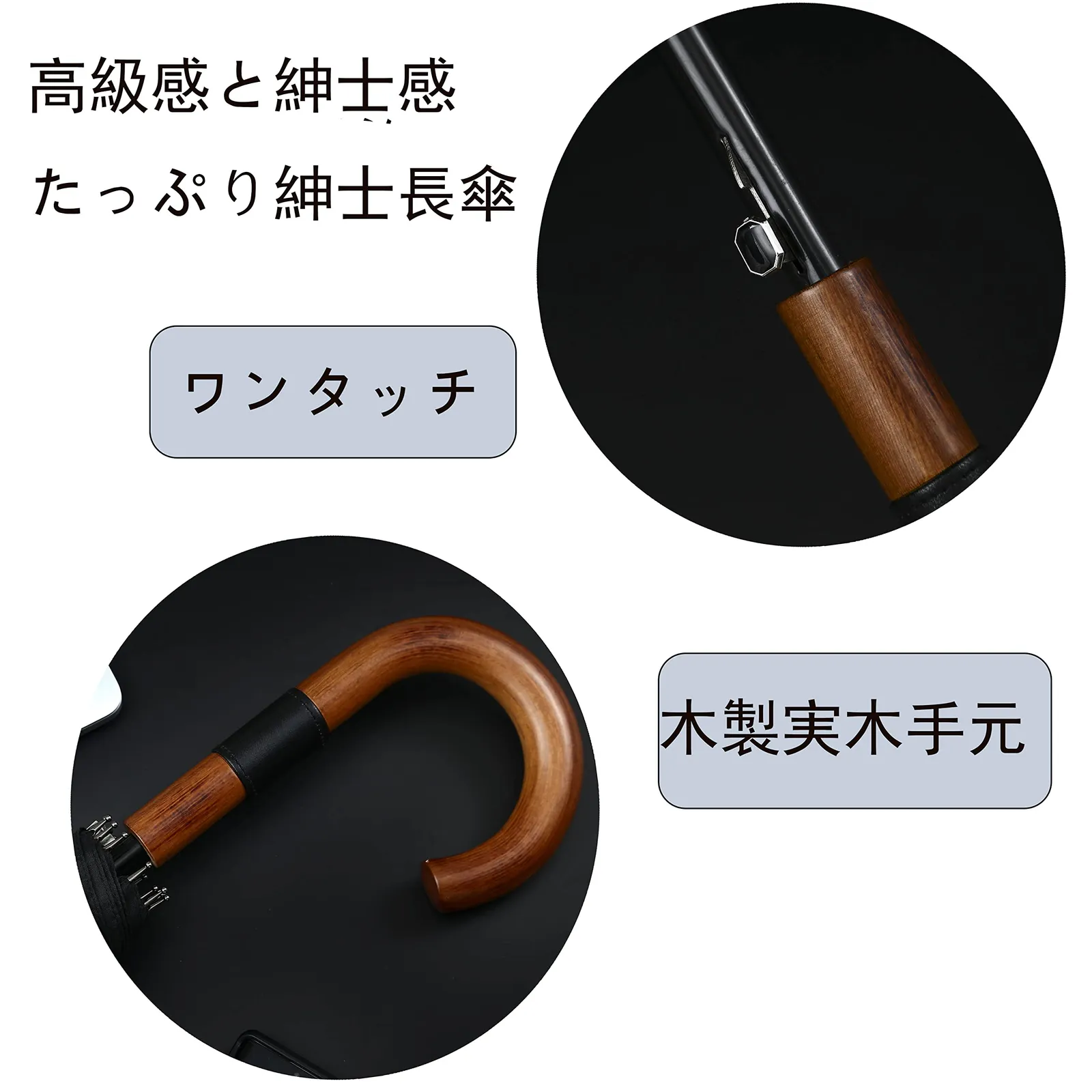 Aiyoupin傘 メンズ 傘 16本骨 紳士傘 ジャンプ傘 大きい メンズ長傘 ワンタッチ傘 丈夫 テフロン加工 撥水 耐風大きい長傘 梅雨対策 晴雨兼用 収納ポーチ付き 紳士長傘