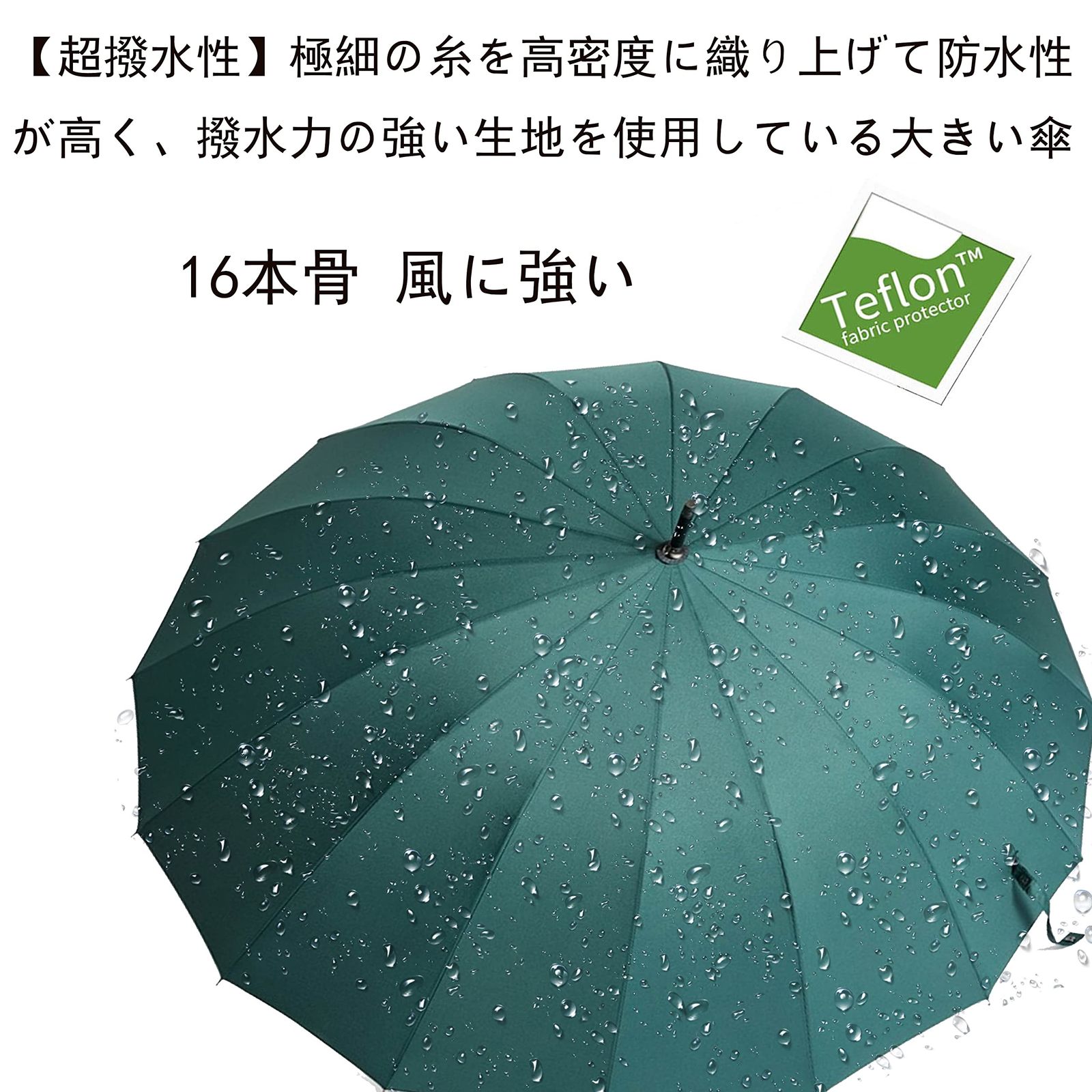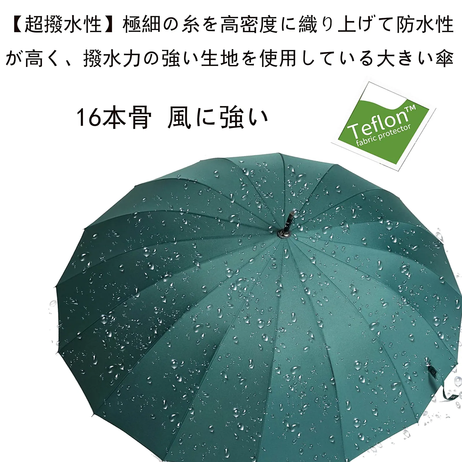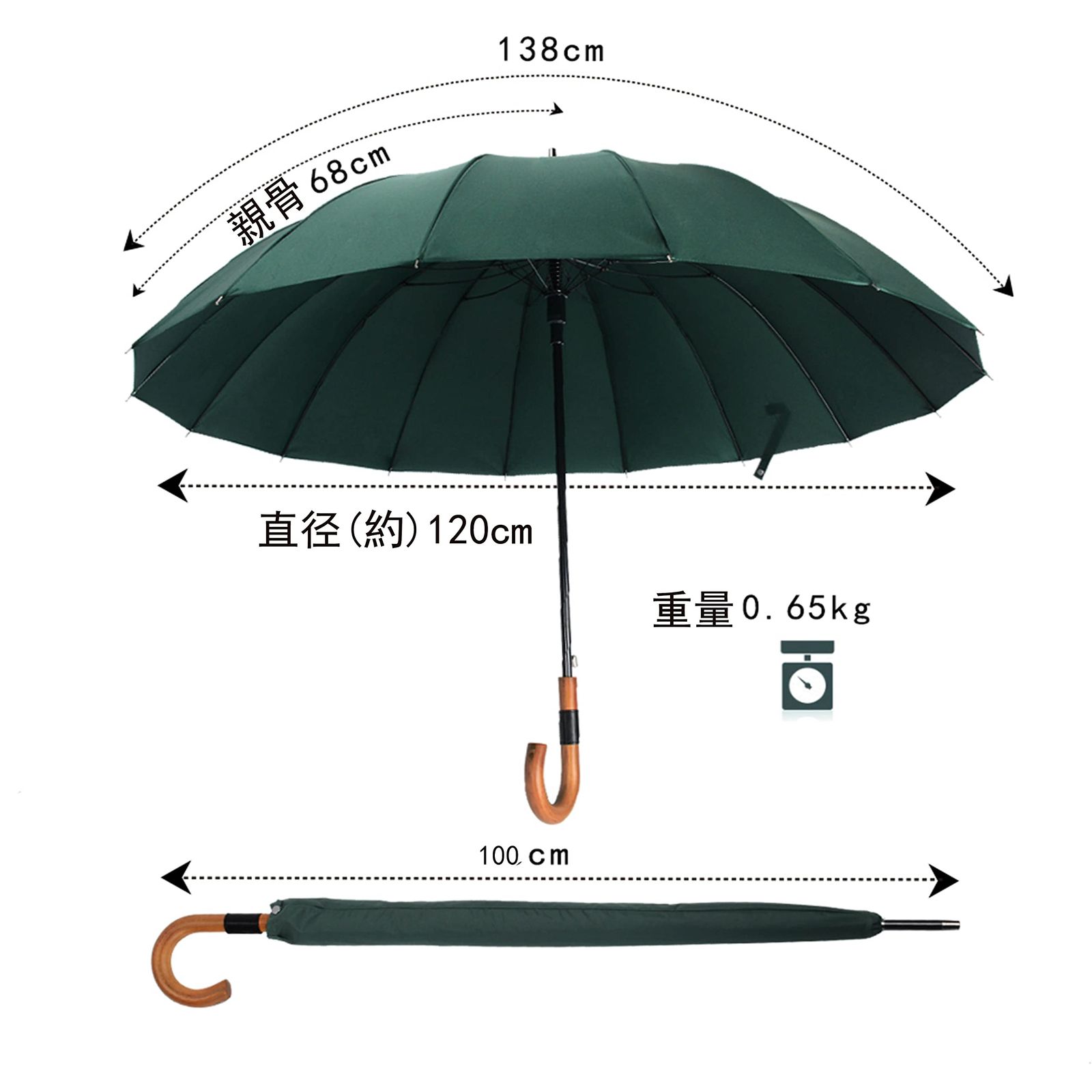 【大きさい傘メンズのサイズ 】ジャンプ式 紳士用長 傘 全長100cm、16本骨傘 高強度グラスファイバー仕様傘開いた直径約120cm、傘の親骨約68cm。男性はもちろん、女性も是非お使いください。大判なので雨に濡れにくく、荷物が多い時も安心。