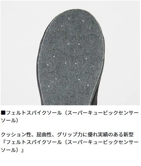ソールはクッション性、屈曲性、グリップ力に優れた一体式スーパーキュービックセンサーソール仕様。一体式のため、屈曲性能、グリップ力が更に向上。