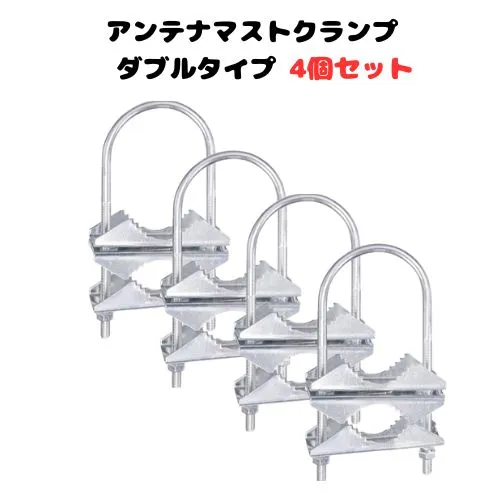 しっかりとした固定が可能な、アンテナマストクランプのダブルタイプが新登場しました!鉄製で防錆びコーティングが施されており、耐久性に優れた商品です。この4個セットは、複数の場所に簡単に取り付けられるので、さまざまなニーズに応えることができます。
