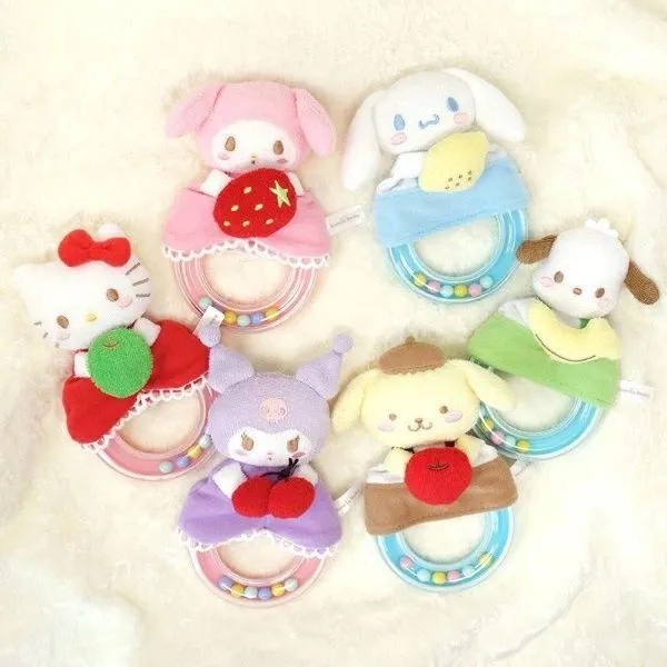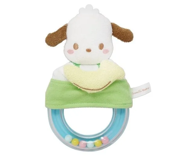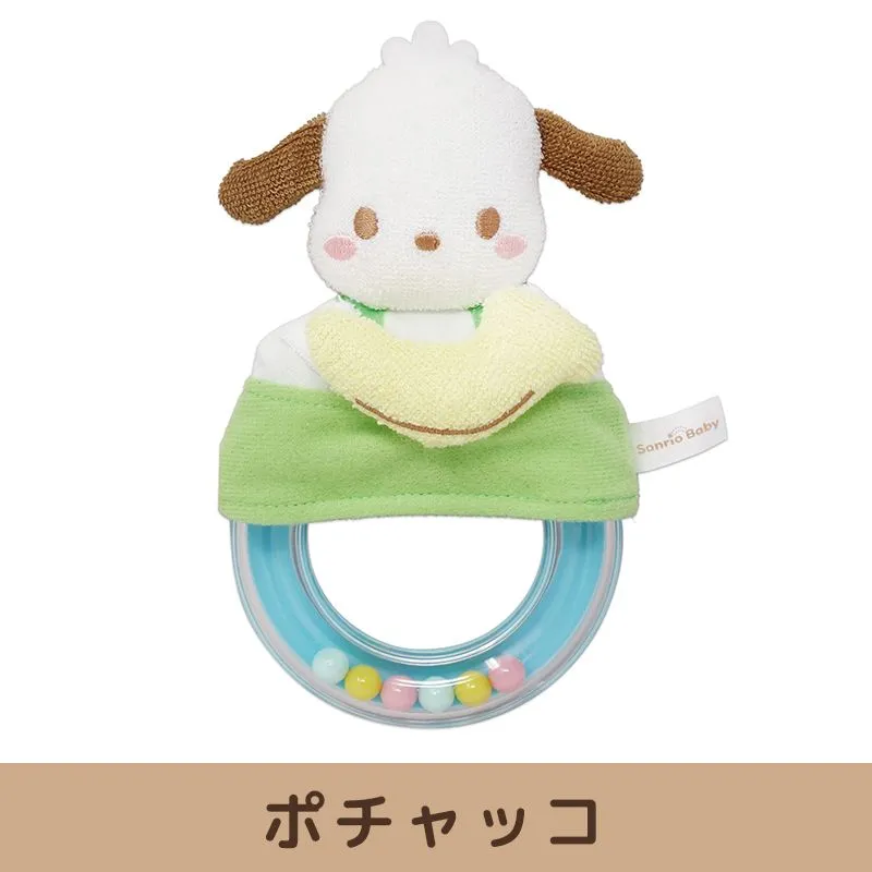 サンリオベビー ガラガラ リングの中にはカラフルなビーズが入っていて、カラカラと楽しい音色がします。 肌触りの違う布やプラスティックなど、色々な触感で赤ちゃんの指先の感覚を育てます。 マスコットとカバーはリングから外して手洗い可能。