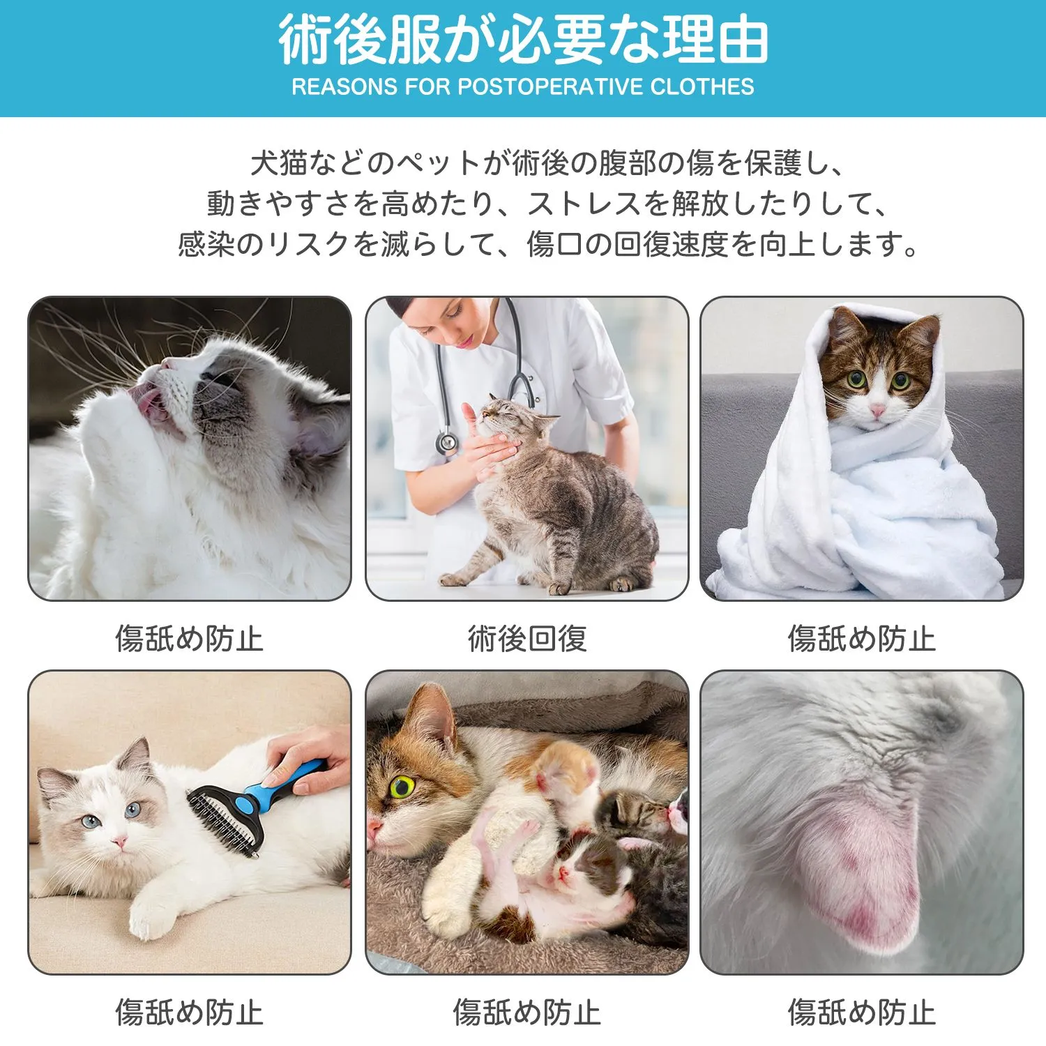 S 猫 服 術後服 介護服 去勢 避妊 手術着 通気性 袖なし 傷舐め防止 薄手 脱げない 着脱簡単 コットン ムレない 吸汗性 通年 冷え防止 皮膚病 抜け毛 対策 洗濯 丸洗い オス メス 猫服 小型犬 ペット服 ペット用術後服 オールシーズン 春夏 秋冬