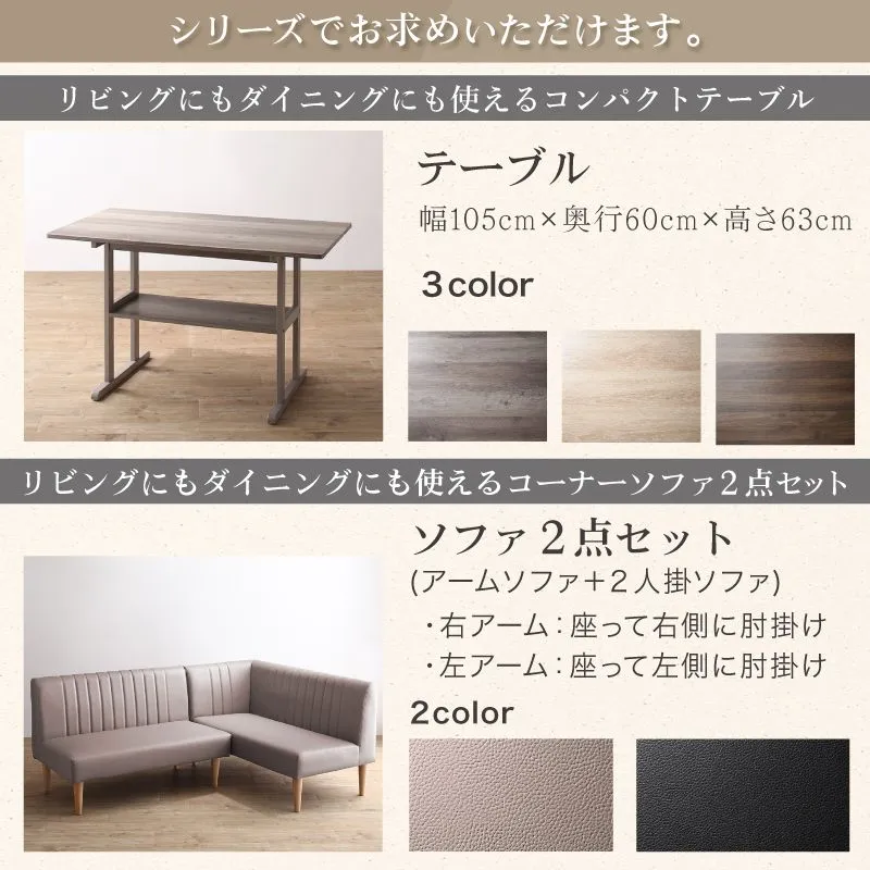 リビングにもダイニングにも使えるコーナーソファ2点セット