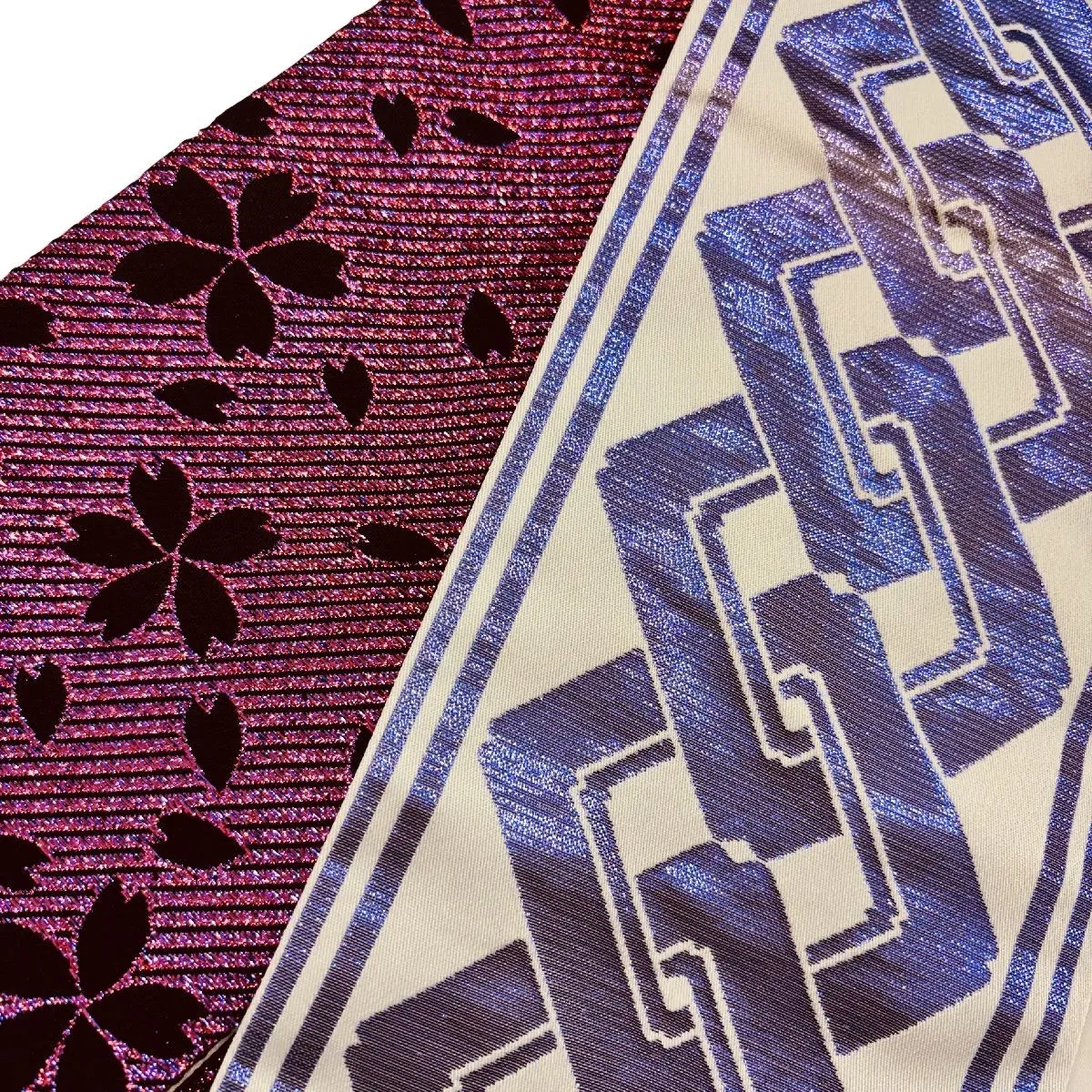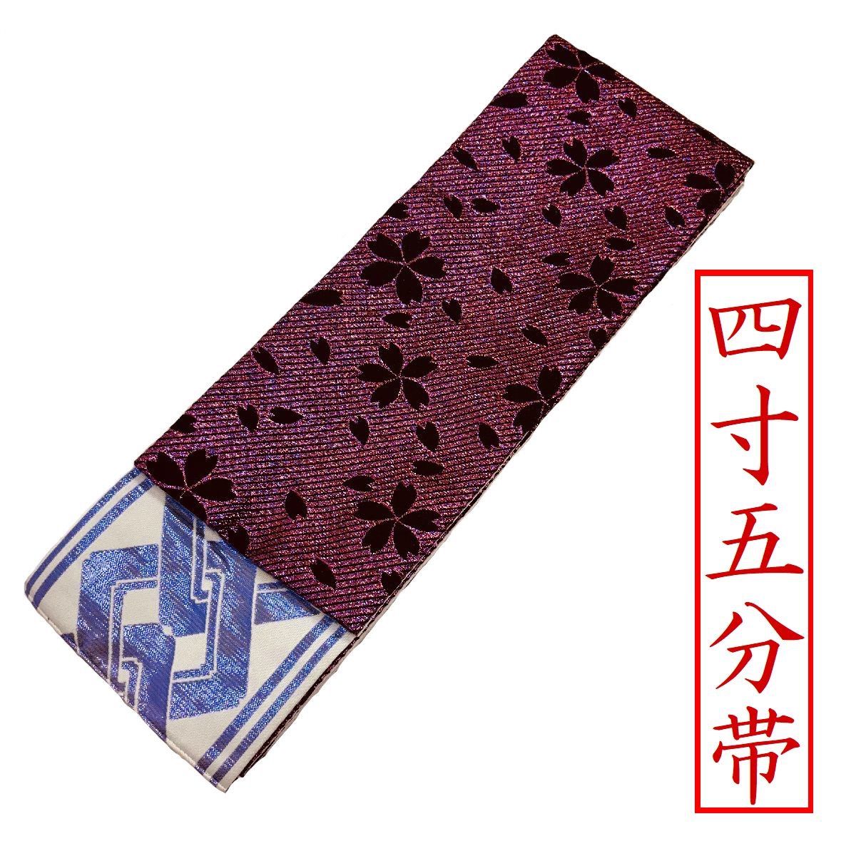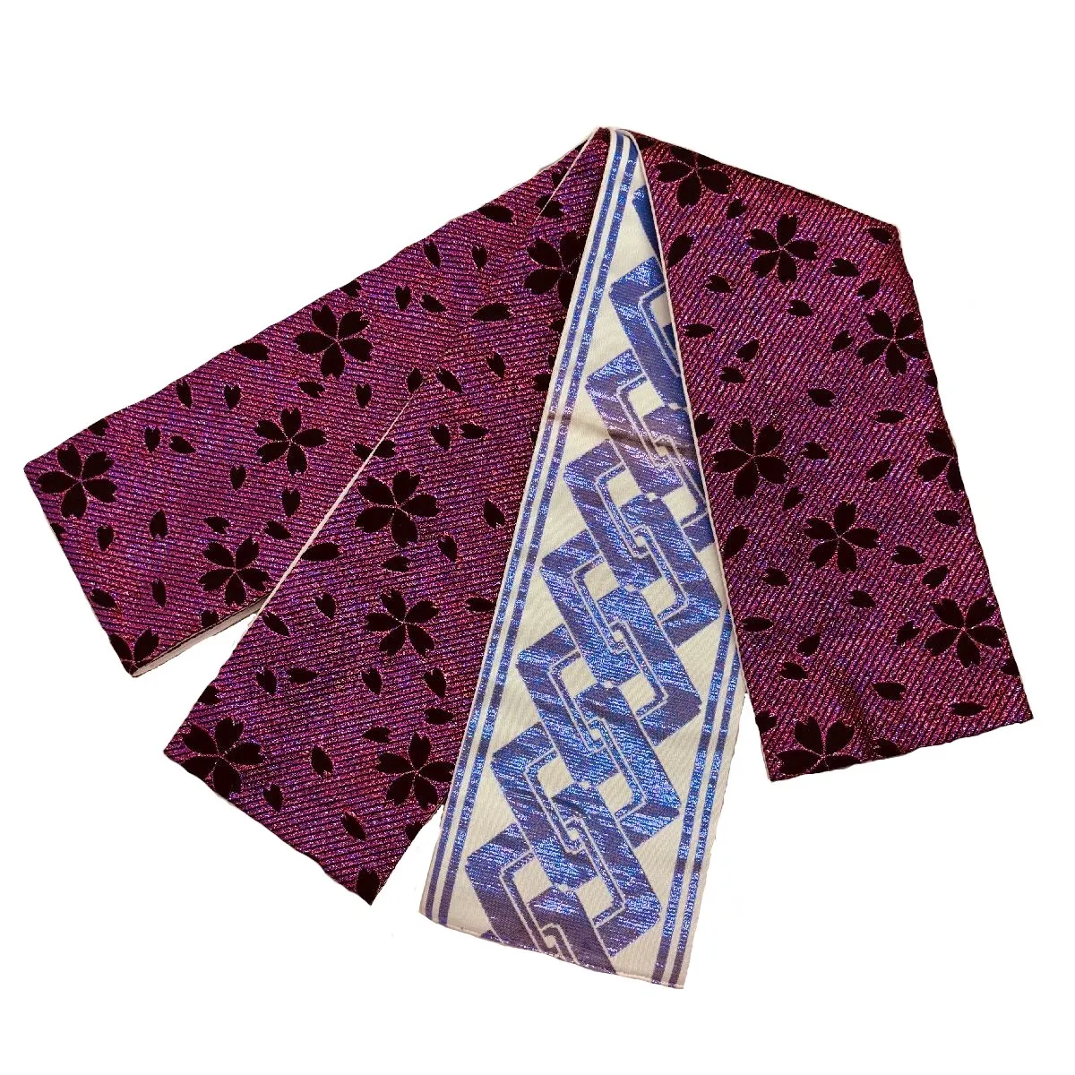 【色柄】 表柄 地色オーロラ(赤紫) 裏柄 地色白色 藤色吉原繋 日本舞踊 日舞 踊り衣装 舞台衣装 演劇衣装 祭り衣装 歌舞伎 和装 アニメ コスプレ イベント KIMONO きもの おどり帯 パープル ピンク ホワイト ブラック 桜 花びら 吉原繋