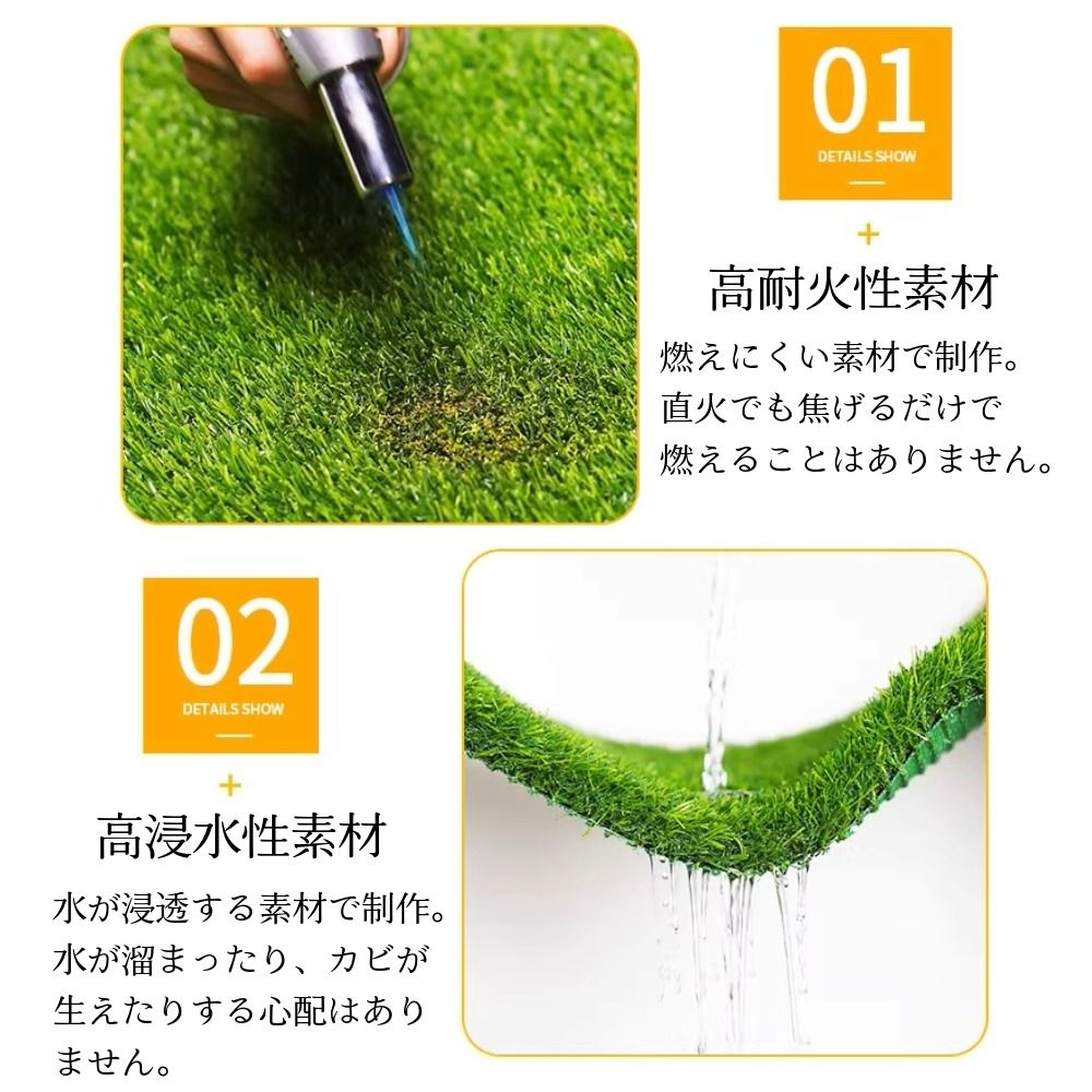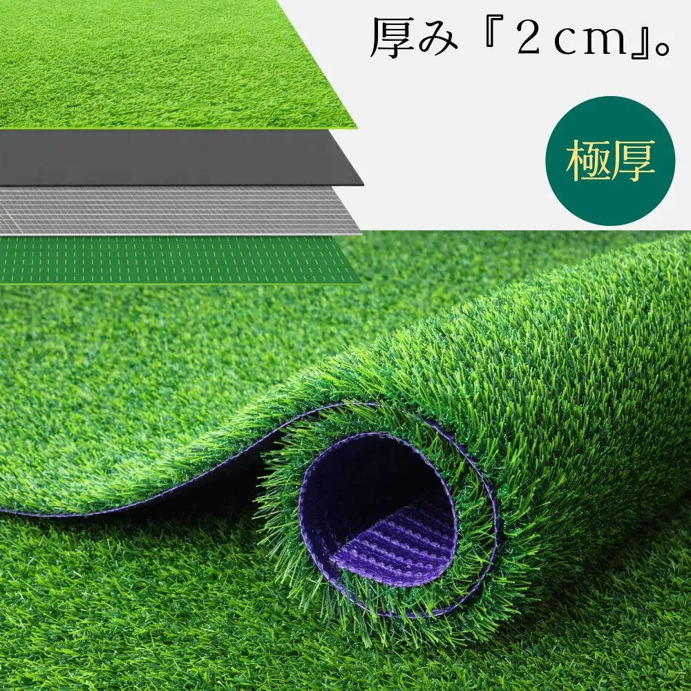 人工芝 2m×5m 極厚2cm リアル芝生 高耐久 人工芝マット 防炎 排水性 通気性 庭 ベランダ バルコニー テラス 屋外用 芝生マット DIY