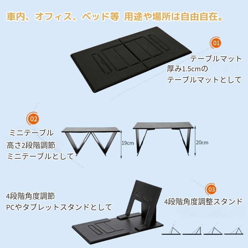 車内はもちろん、ベッド上やオフィス、自宅での簡易デスクとしても使用でき、