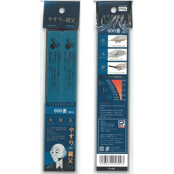 フィルムスティックやすり 600番 両面仕様:2本入り やすりの親父 PY06