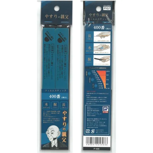 フィルムスティックやすり 400番 両面仕様:2本入り やすりの親父 PY07