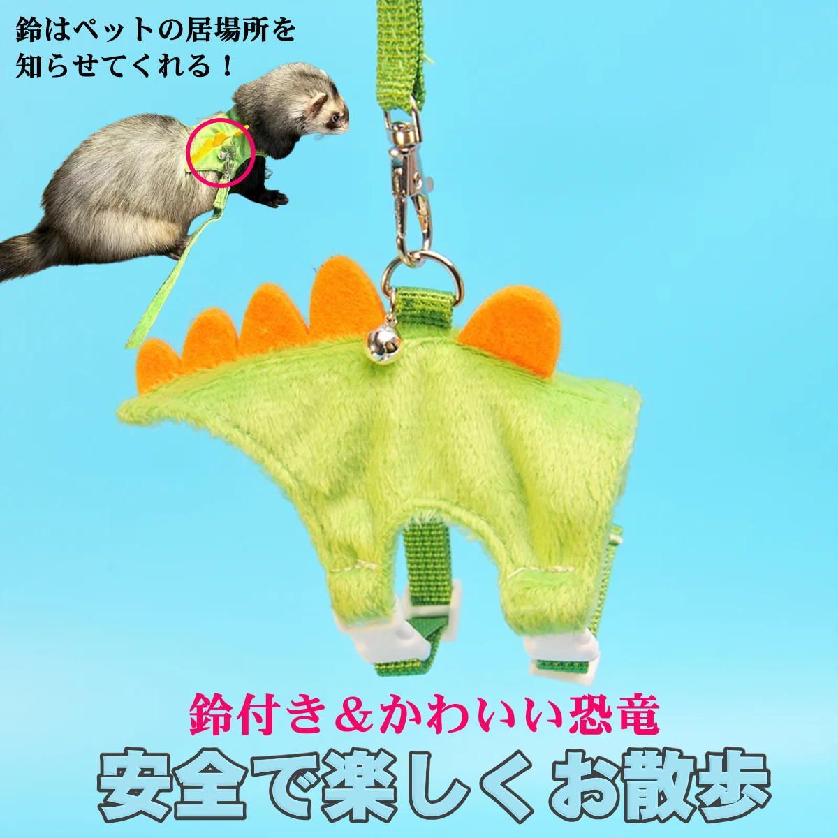 まるで可愛い恐竜の小動物用のハーネス&リードです。