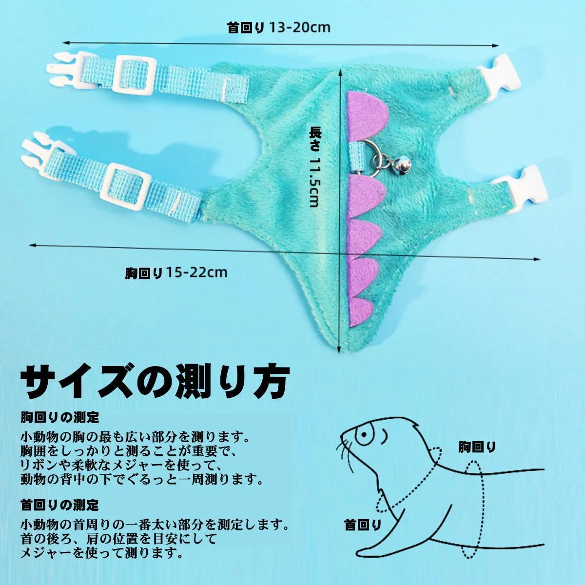 首回り:約13~20cm、胸回り:約15~22cm、リードの長さ:約120cm