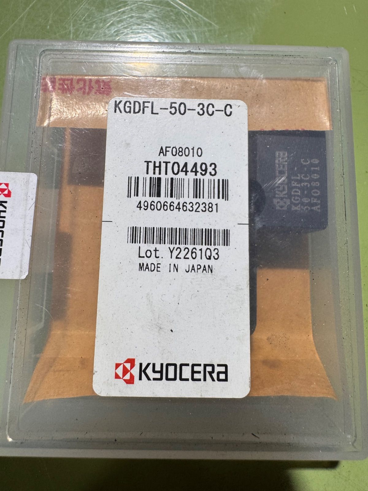 KGDFL-50-3C-C 京セラ(KYOCERA)製 突っ切り用ホルダーです。 新品・未使用品となります。 保管に伴う外箱のスレ等はご了承ください。 商品の状態等や付属物については画像をよくご確認ください。 型番や商品詳細などネットでお調べください。 領収書の発行を対応致します。必要な方はメッセージください。 #旋盤チップ #超硬チップ #切削工具 #工作機械 #旋盤加工 #金属加工 #インサート #インサートチップ #チップ #工具 #機械工具 #京セラ #KYOCERA #まとめ売り