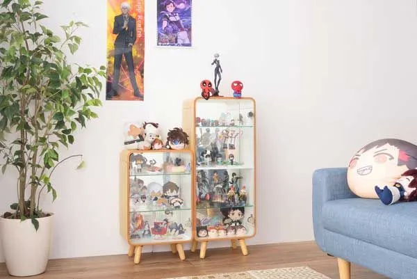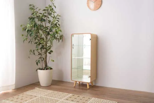 個性的 定番 おしゃれ こだわり デザイン お洒落 リーズナブル お買い得 お値打ち シンプル 高級感 高品質 ハイクオリティー カジュアル シリーズ ディスプレイケース ガラスケース 台 木製 ウッド ラック 棚板 収納 鏡面 フィギュアケース コレクションケース 4段 オタク 推し活 飾る ホワイト 内側白色 木目 脚付き ライトブラウン 茶色