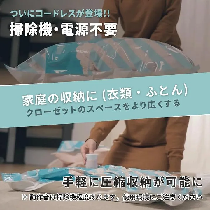 強力な吸引力で衣類やタオル、寝具などを驚くほどコンパクトにすっきり収納できます。