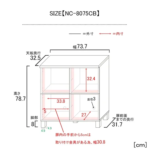外寸:幅73.7×奥行32.5×高さ78.7(cm)