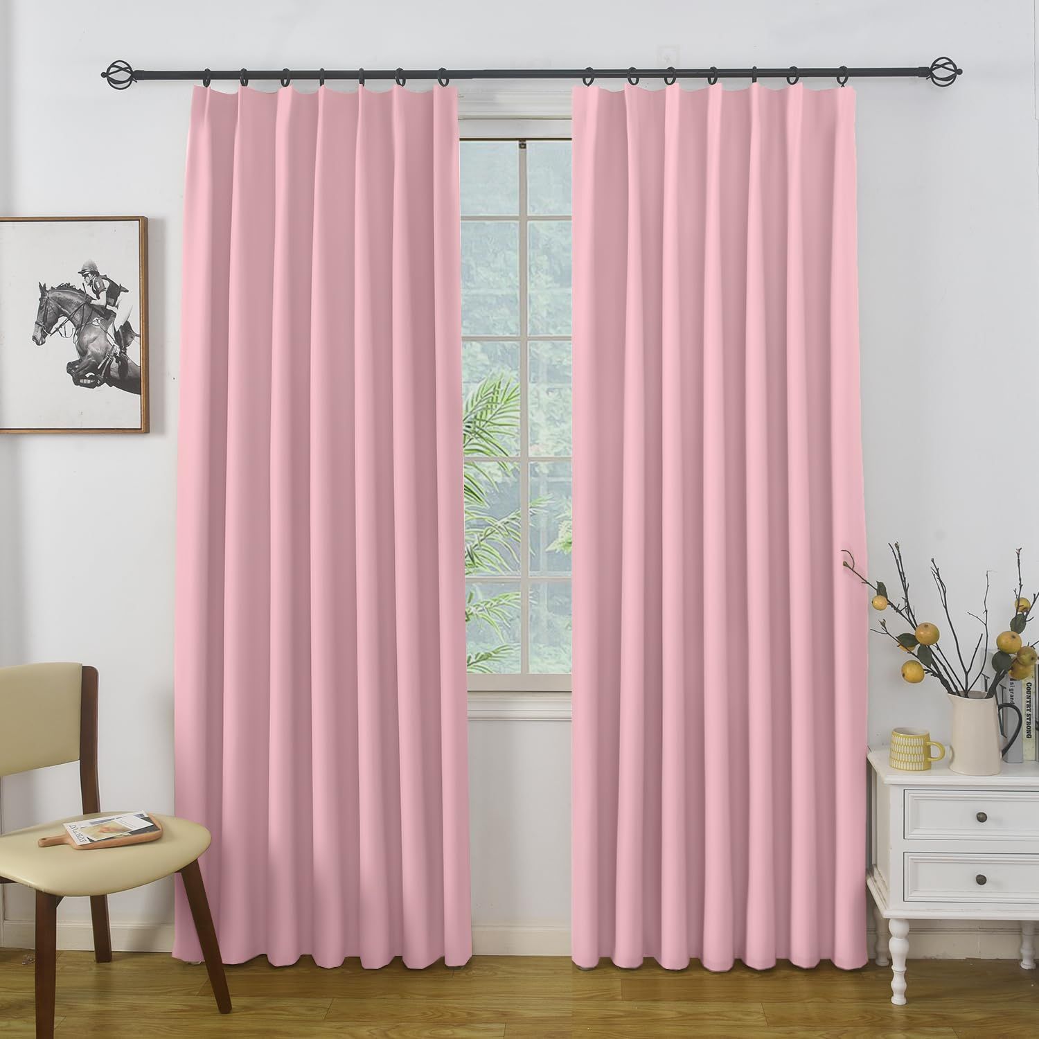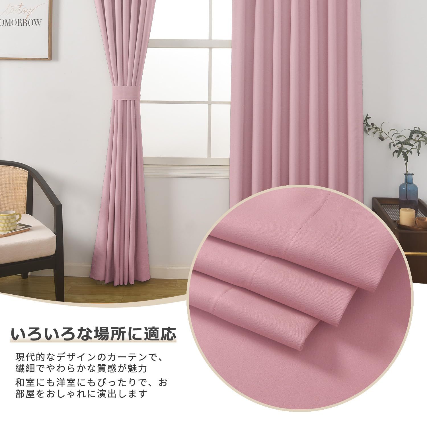 PANDA INTERIOR 遮光カーテン 2枚セット 1級遮光 防音 断熱 既成カーテン 厚地 無地 スタイリッシュ 省エネ 調節可能フック付き 洗濯可 リビング・寝室・カフェ用 (ライトピンク 幅100cm×丈220cm-2枚)