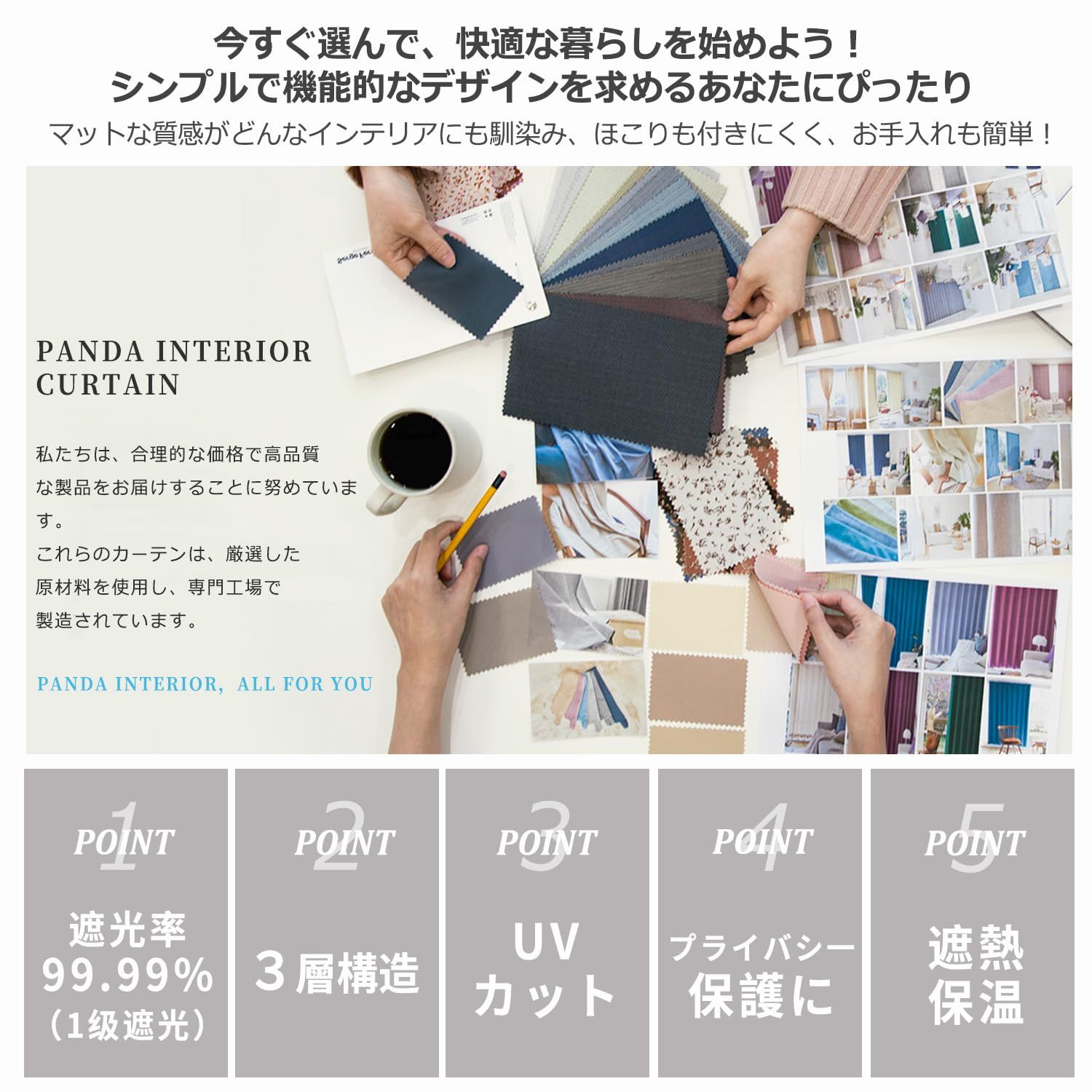 高品質の生地: 断熱 カーテン遮光生地はポリエステル製です。ソフトで滑らかな手触り、スタイリッシュな外観で、寝室、リビングルーム、ベッドルーム、子供部屋など様々な場所に適しています。遮光性、断熱性、防音性に優れています