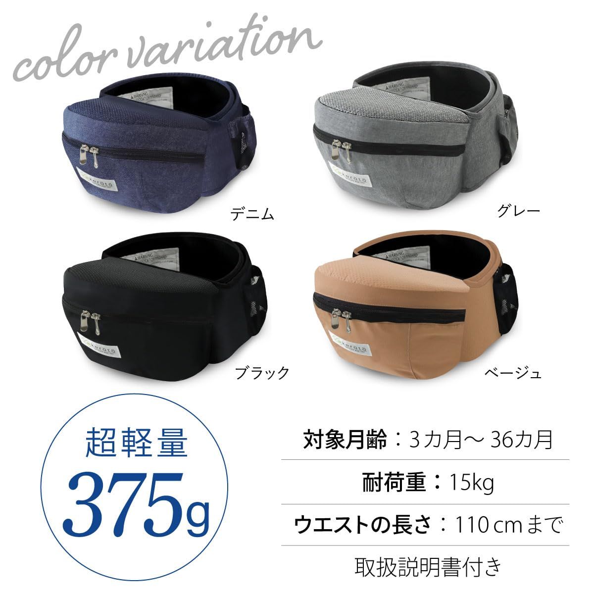 (ケラッタ) HipGo ヒップシート 抱っこ紐 軽量たったの375g ウエストキャリー 滑り止め付 ウエストポーチ (グレー)