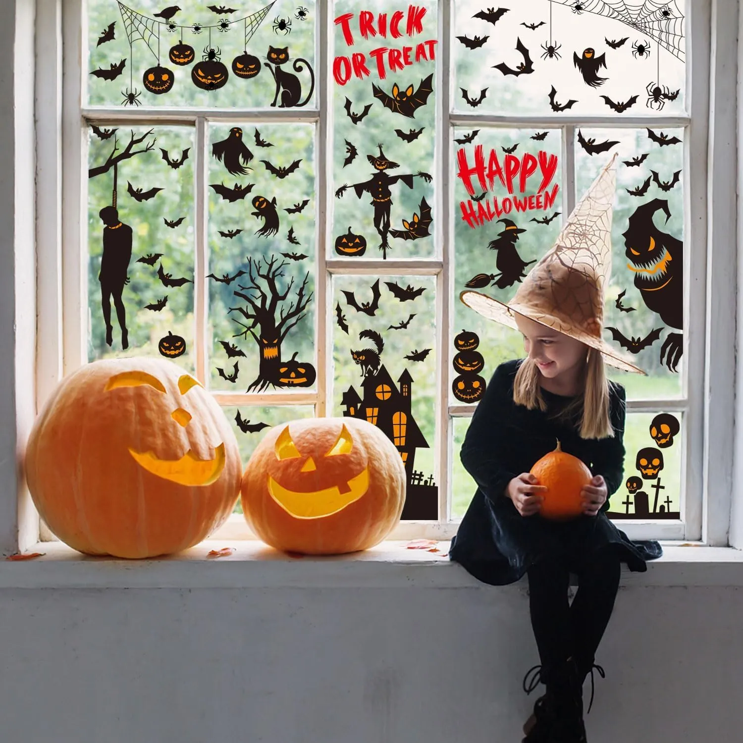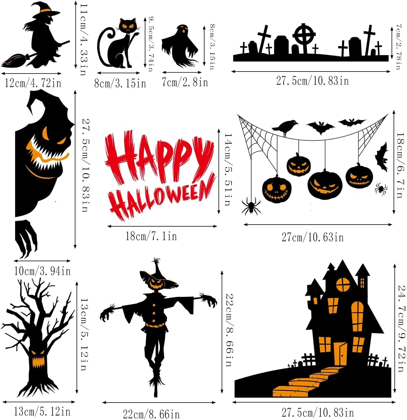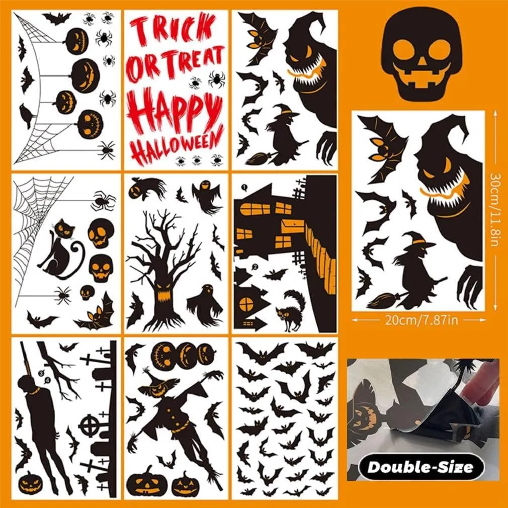 ??ハロウィンの準備:ハロウィンウィンドウステッカー9枚、サイズ30x20cm、合計87枚。ハロウィンの不気味な雰囲気を演出するのに最適です!