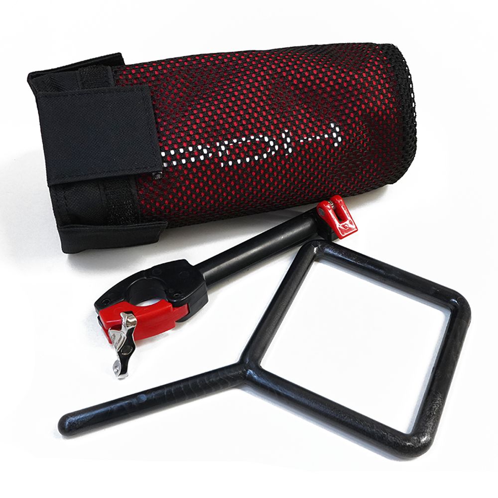 取り付けは簡単で、付属の取り付け部をハイハットスタンド等のポールに固定し、そこにバッグを入れることでいつでもスティックを取り出すことのできるスティック受けとなります。