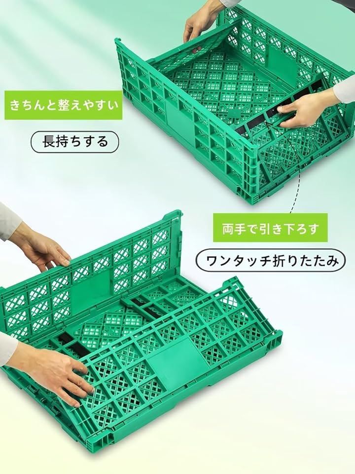 「商品仕様」サイズ:約幅60cm奥行40cm高さ22cm(収納時4.5cm) 材質:ポリプロピレン 耐荷重:(約)30kg 容量:42L 積み重ね重量:70kg