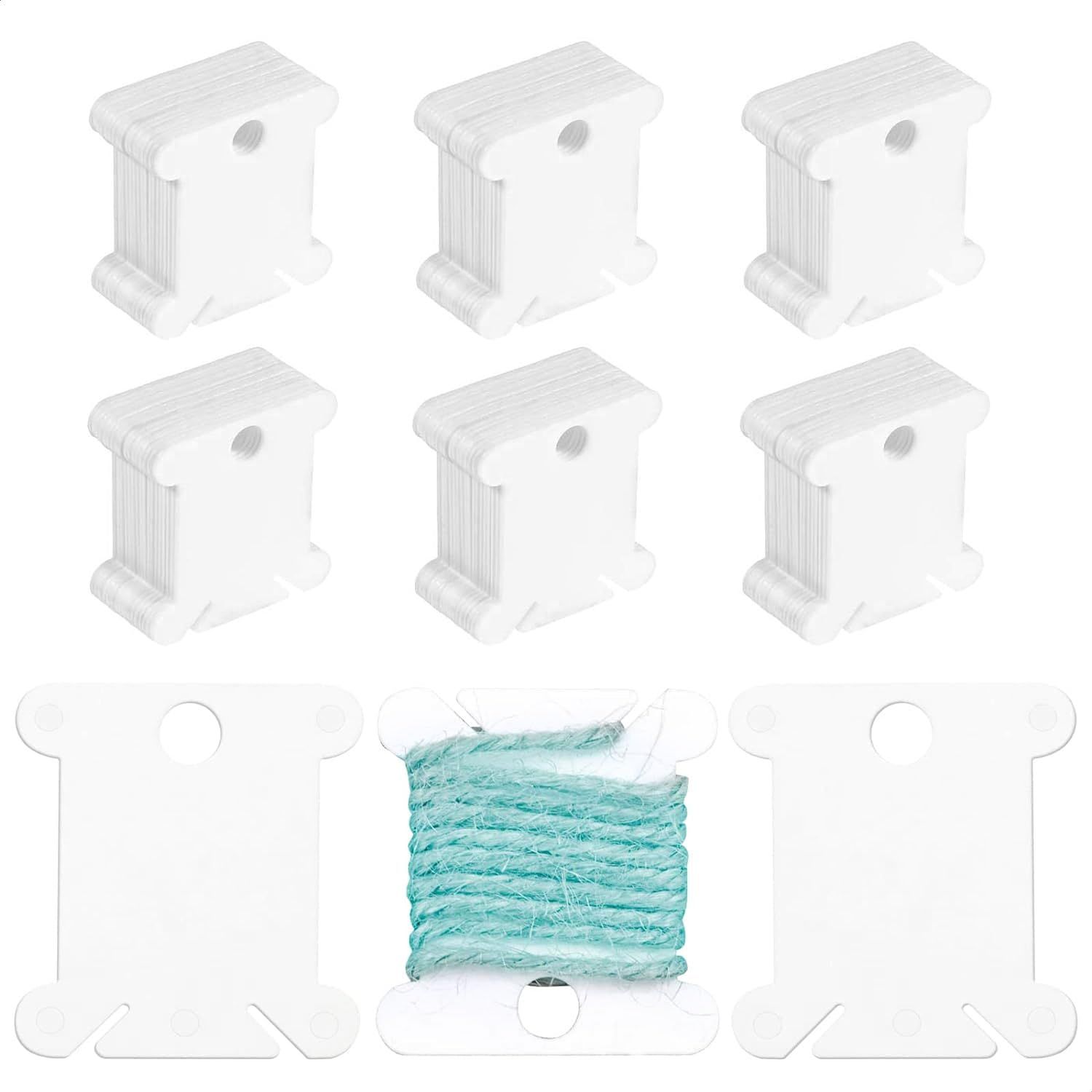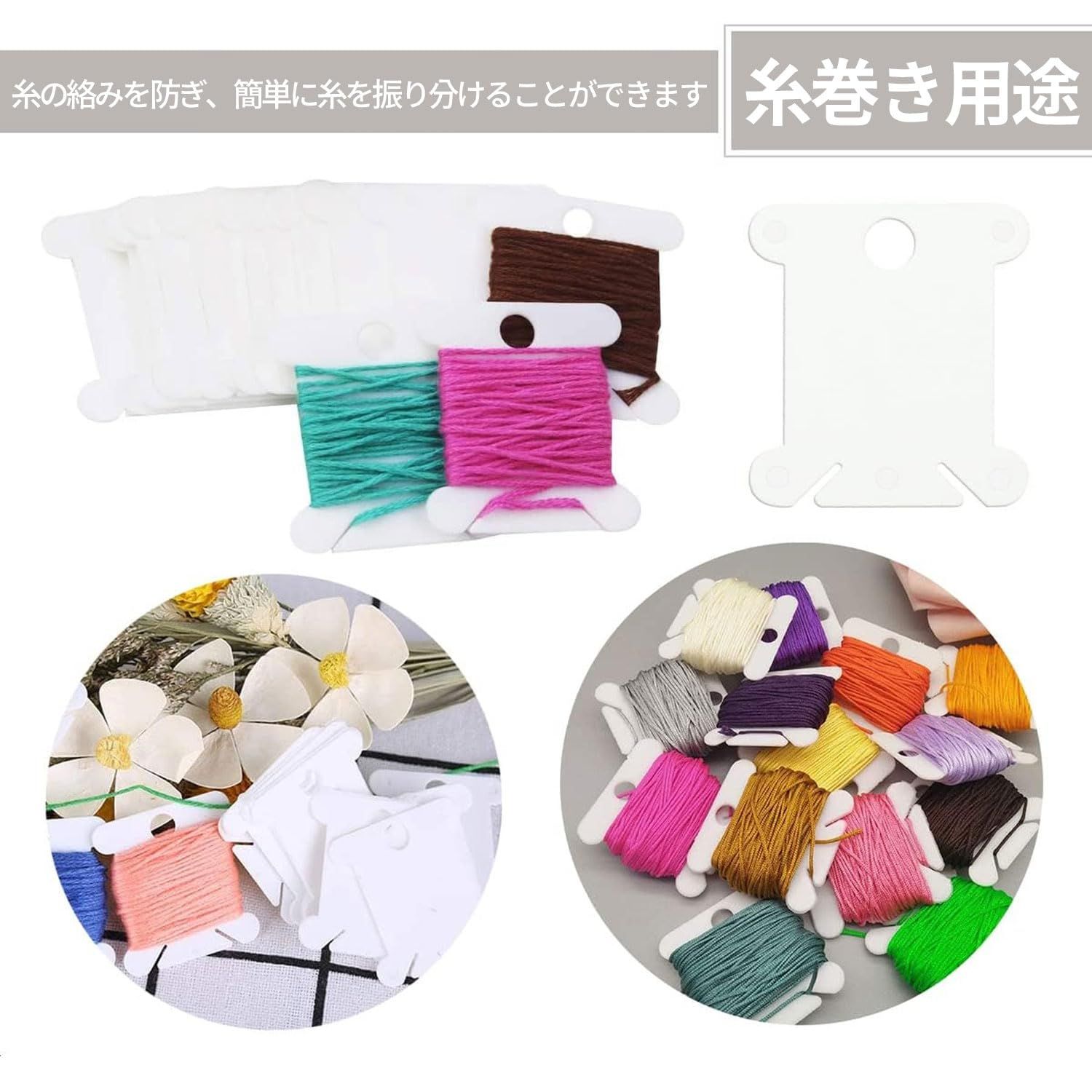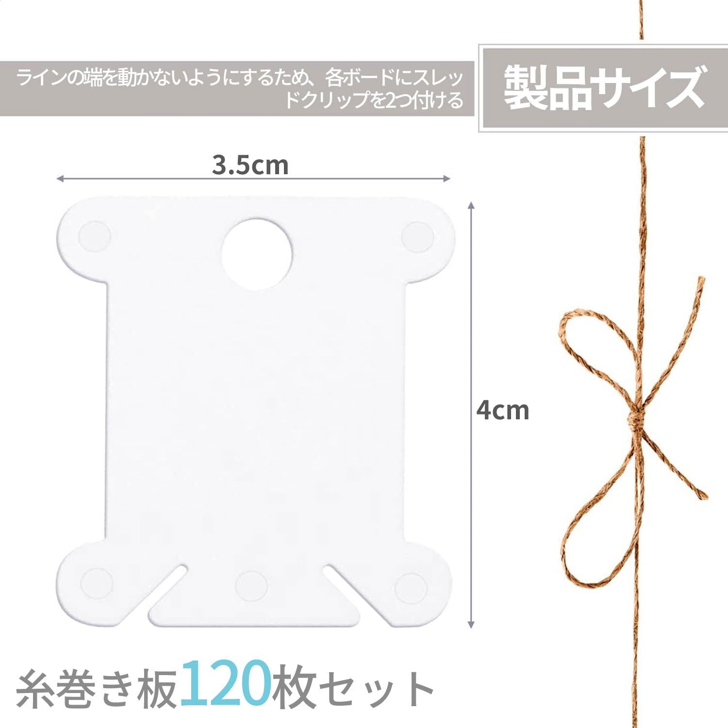 糸巻き台紙 刺繍糸 収納 糸巻きクリップ 120シート 刺繍糸の巻きと仕上げ用 プラスチック 保管 DIY クラフト 整理 (白)