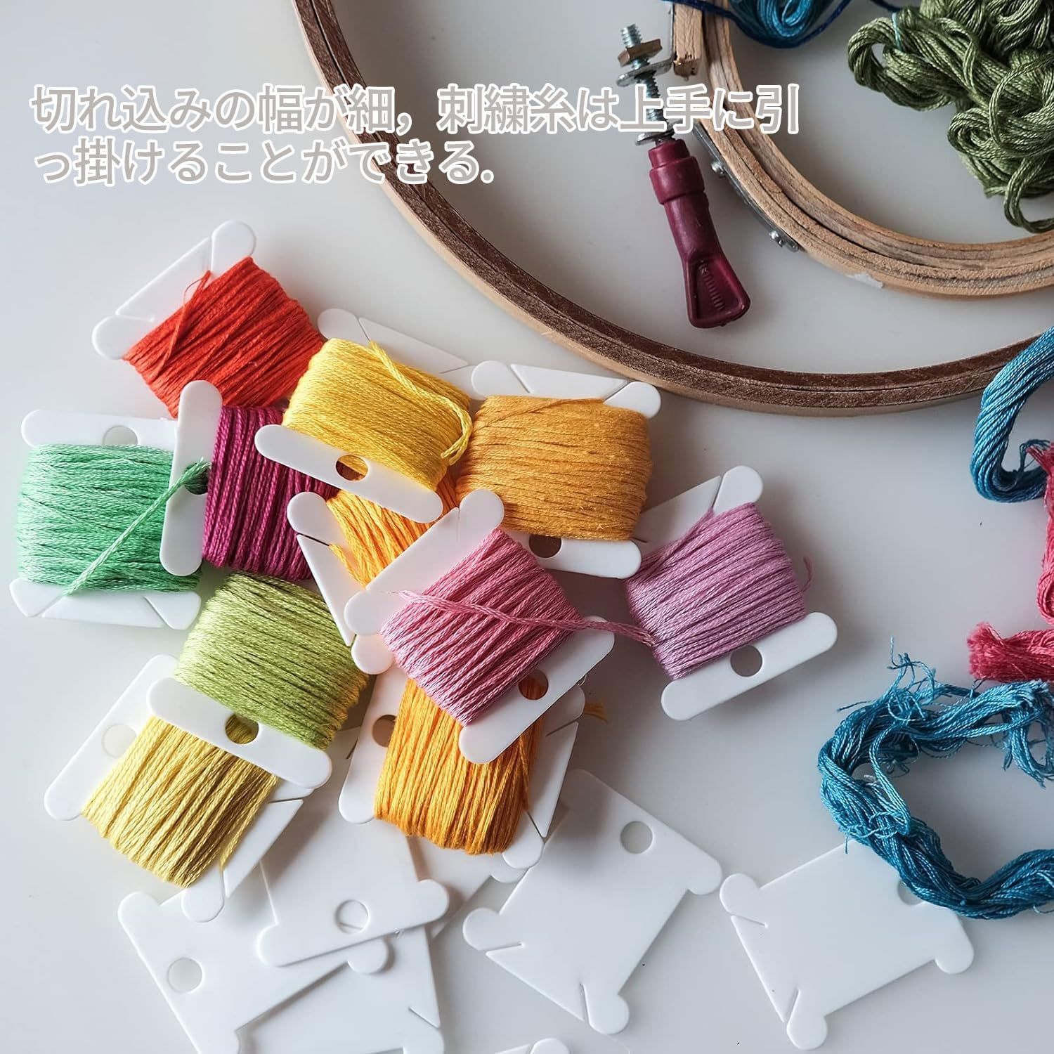【製品の特徴切り口の幅が狭いので、刺繍糸をしっかり引っ掛けることができます。何よりコンパクトに収納でき、糸選びが簡単です。