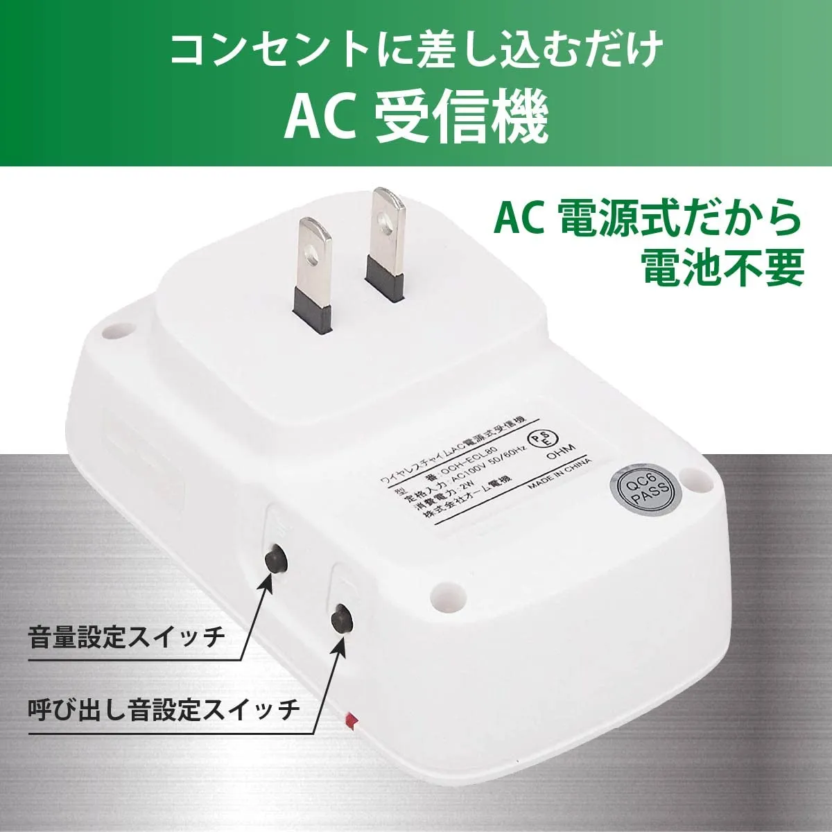 オーム電機 ワイヤレス コールチャイム(瞬間発電式押しボタン送信機+AC式受信機) 08-0520 OCH-ECL80 ホワイト