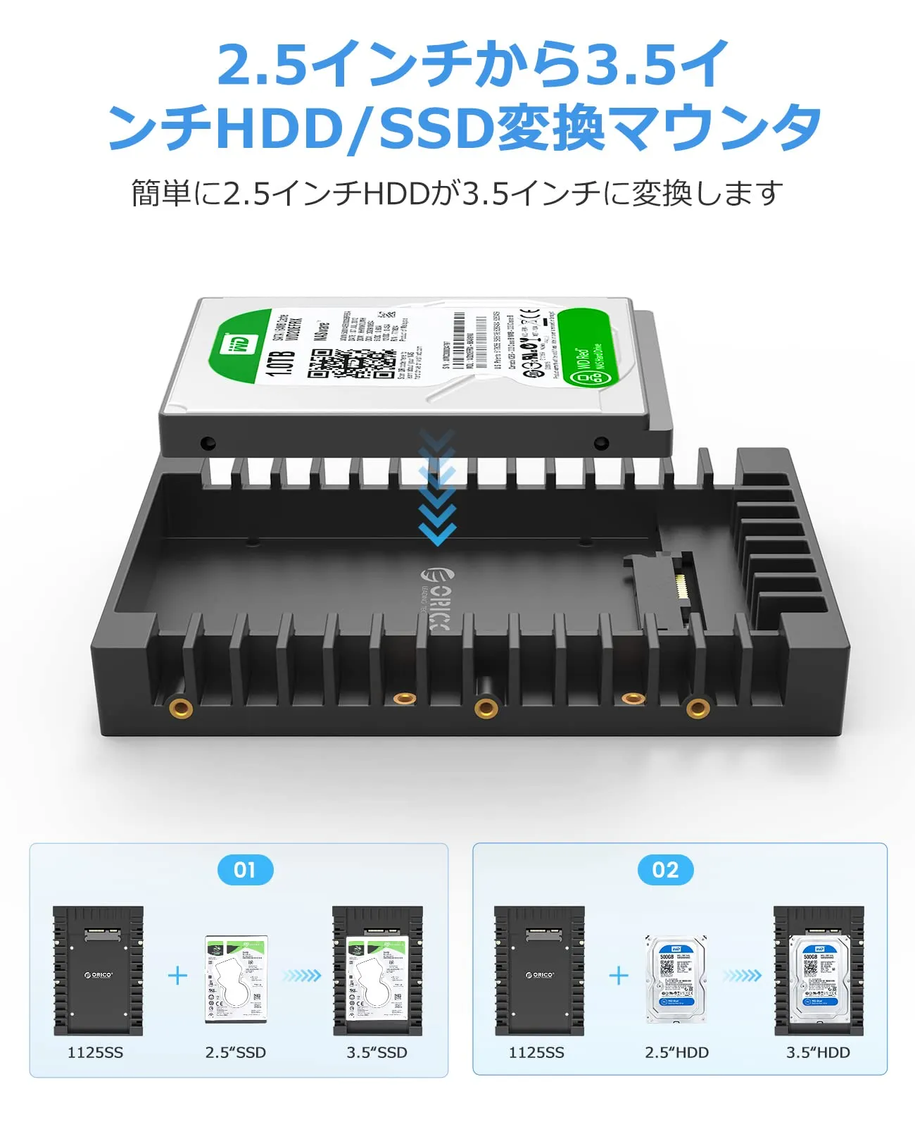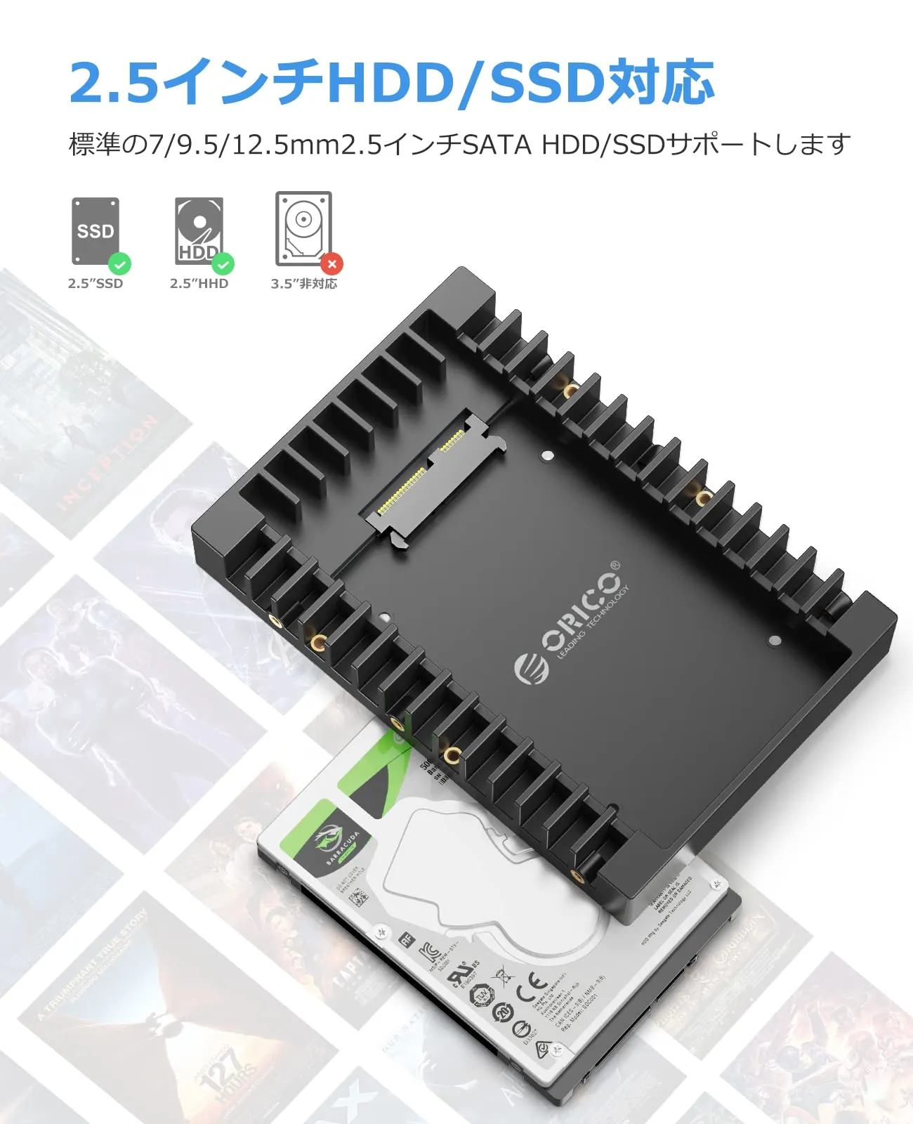ORICO 2.5 → 3.5変換 2.5インチ HDD / SSD 変換マウンタ SATAインターフェース内蔵 HDDケース 3.5インチ 変換ブラケット ネジ付き ブラック 1125SS