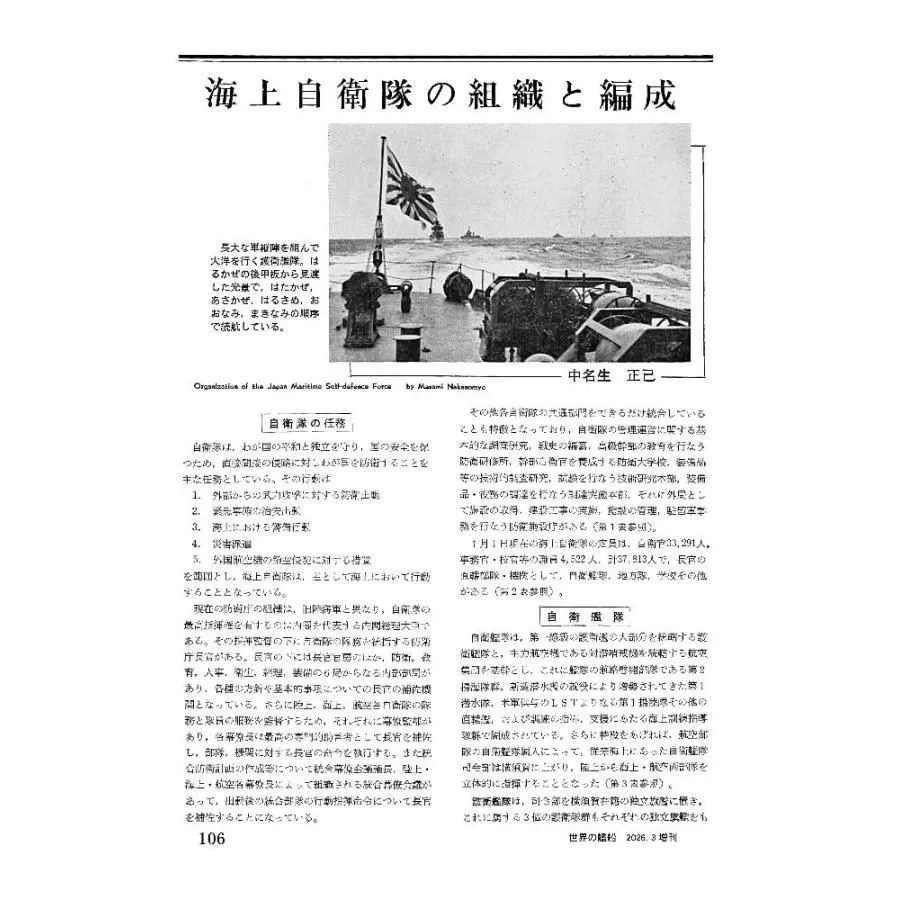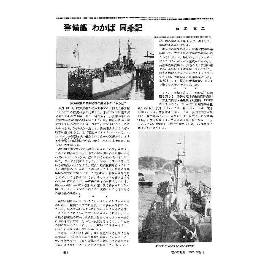 「なつかしの自衛艦 草創期の海上自衛隊艦艇」 綴込:折込付録(護衛艦「はるかぜ」/護衛艦「うらなみ」) 世界の艦船増刊 出版社名 海人社 発売日 2026年2月17日 雑誌JAN 4912056040366 雑誌コード 05604-03