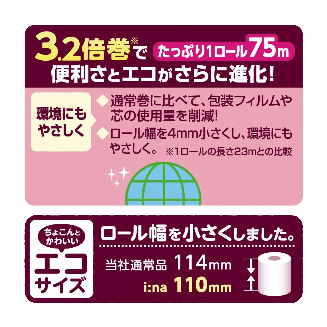 エリエール トイレットペーパー i:na(イーナ) フラワープリント 3.2倍巻き 75m×4ロール ダブル パルプ100% 華やかなフローラルの香り