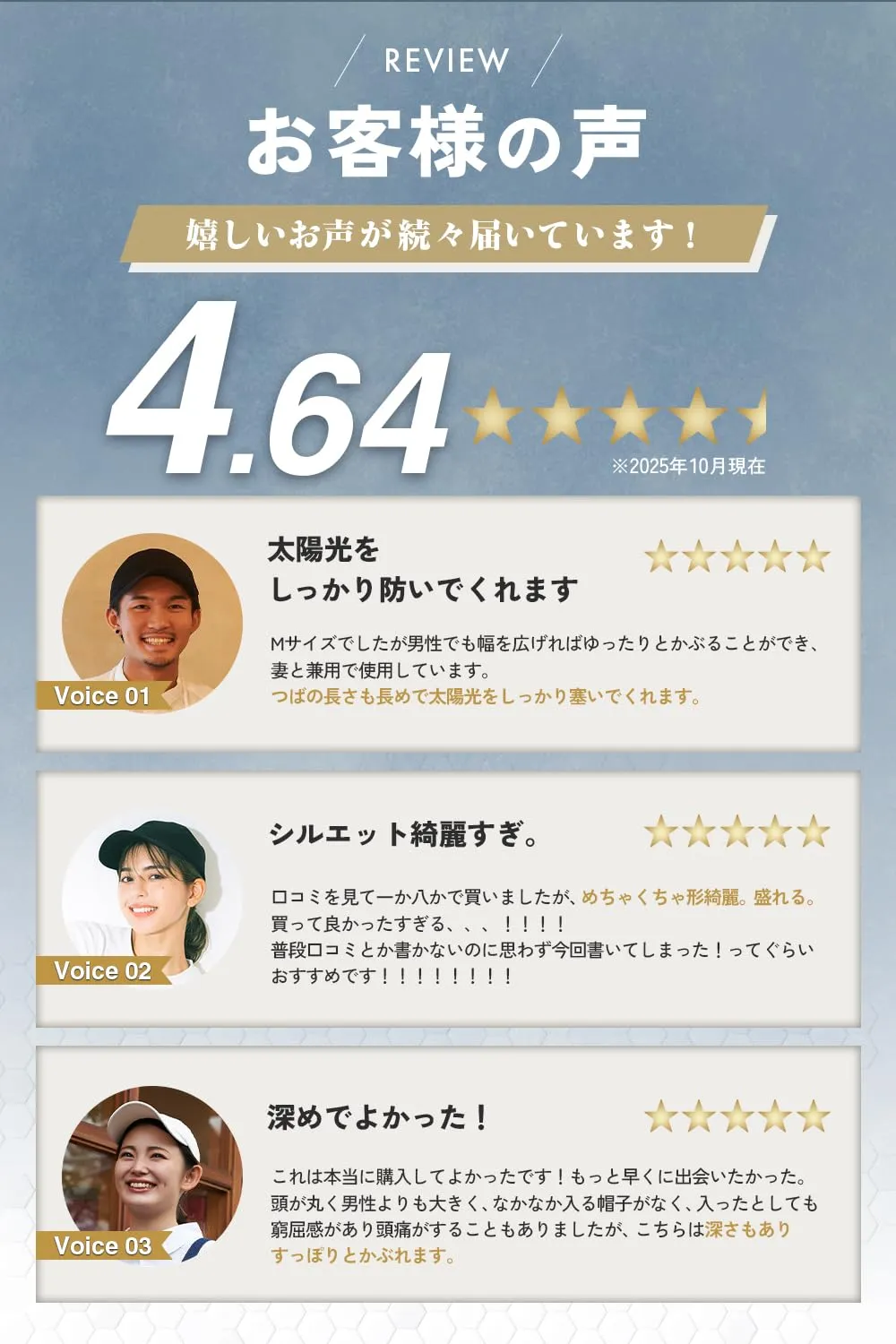 【二重構造で型崩れ防止】従来のキャップとは異なり、前面部分に二重構造を採用しました。この設計により、長時間被っても型崩れしにくく、美しいフォルムを保ちます。使用頻度が高い日常使いでも耐久性を発揮し、いつでもスタイリッシュな見た目をキープ。高品質な仕上がりが魅力の一品です。