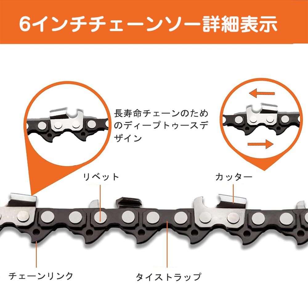 【高硬度の替刃】: 炭素鋼で作られた6インチチェーンソー 替刃は高温で焼入れされ、断裂しにくく、耐久性・耐摩耗性に優れています。