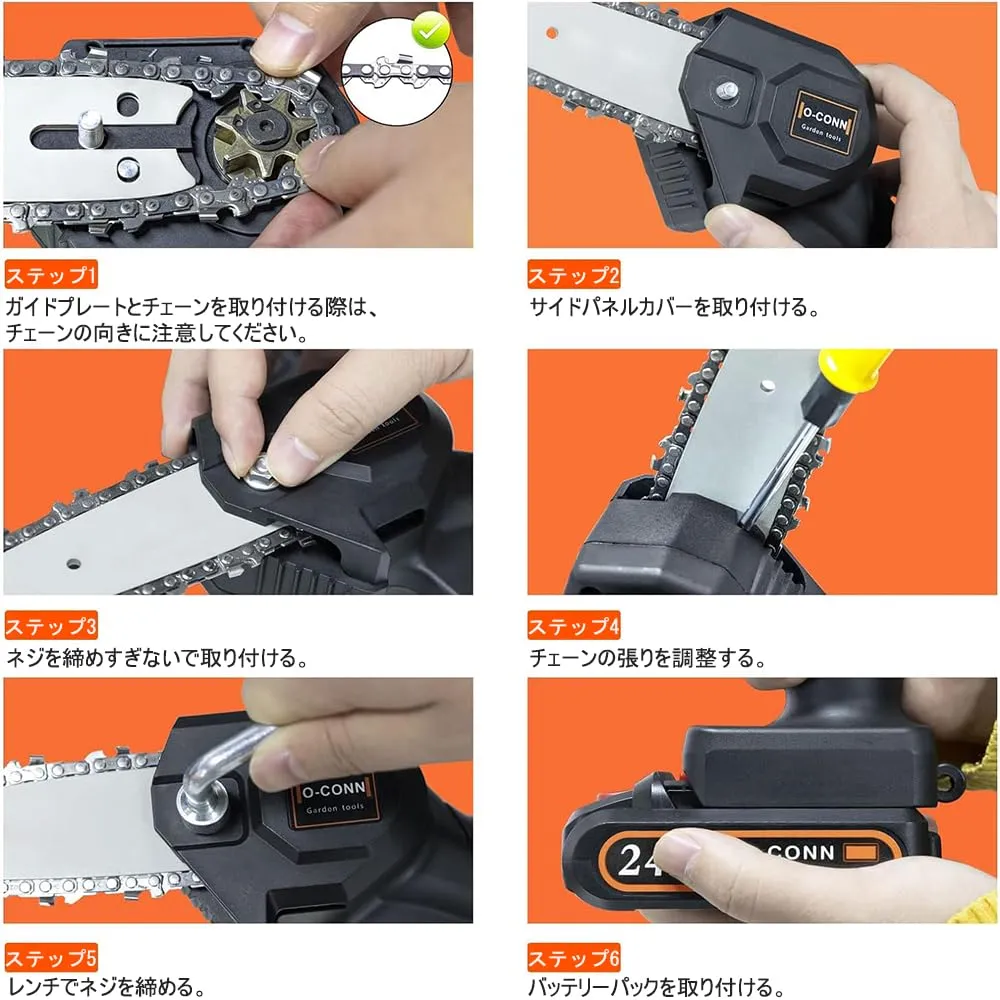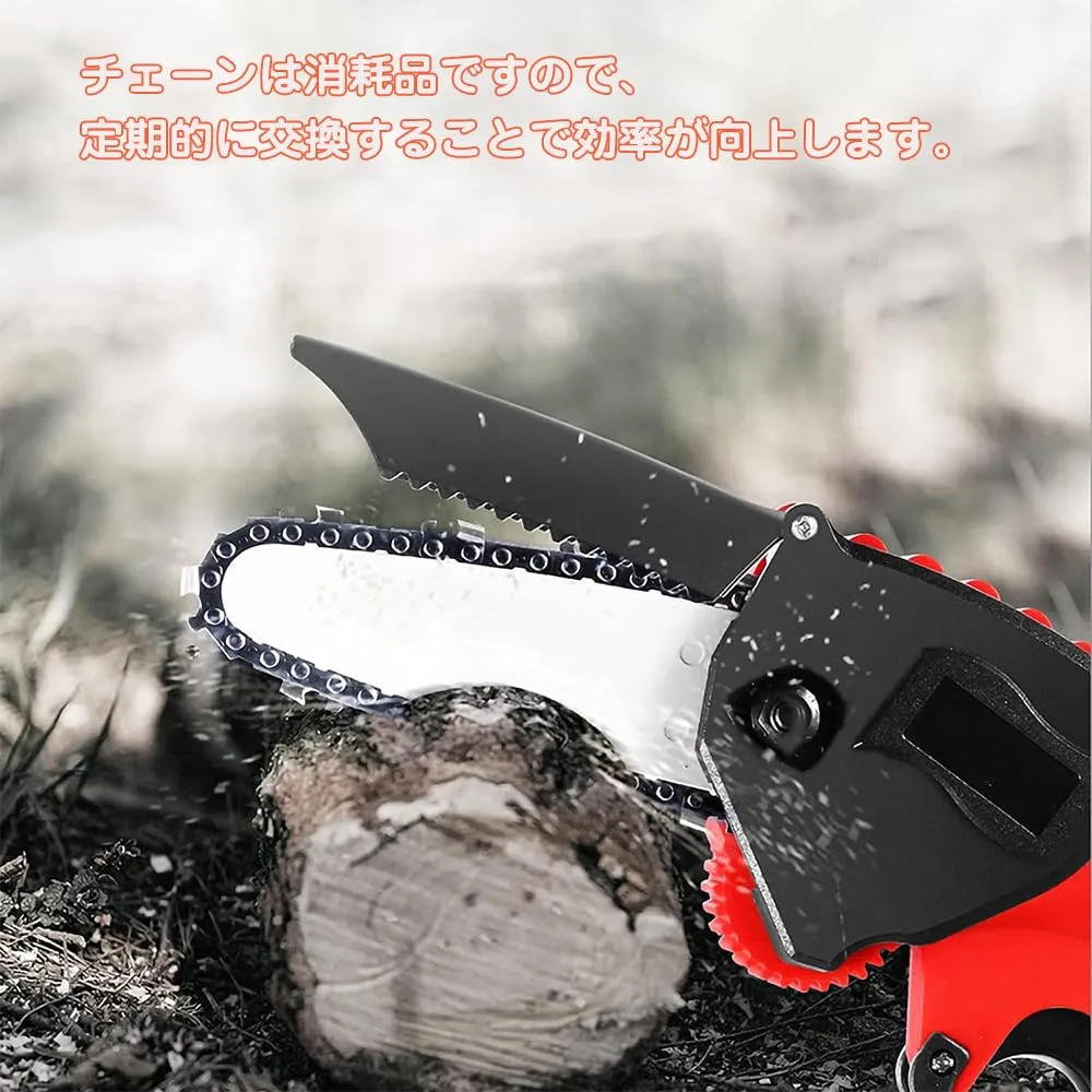 【優れた切れ味】: 木製の歯のデザインが枝にしっかりと食い込み、効率的かつスムーズに切断できます。高硬度のカービングチェーンは非常に耐久性があります。