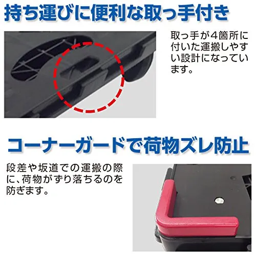 ●荷物ずれを防ぐコーナーガード付き。