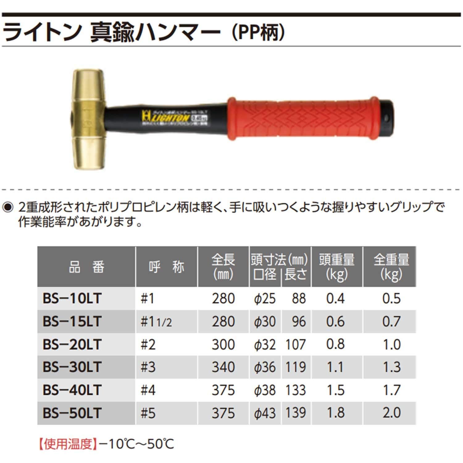 ●頭部は真鍮製なので銅ハンマーに比べ打撃力・耐久性に優れています。