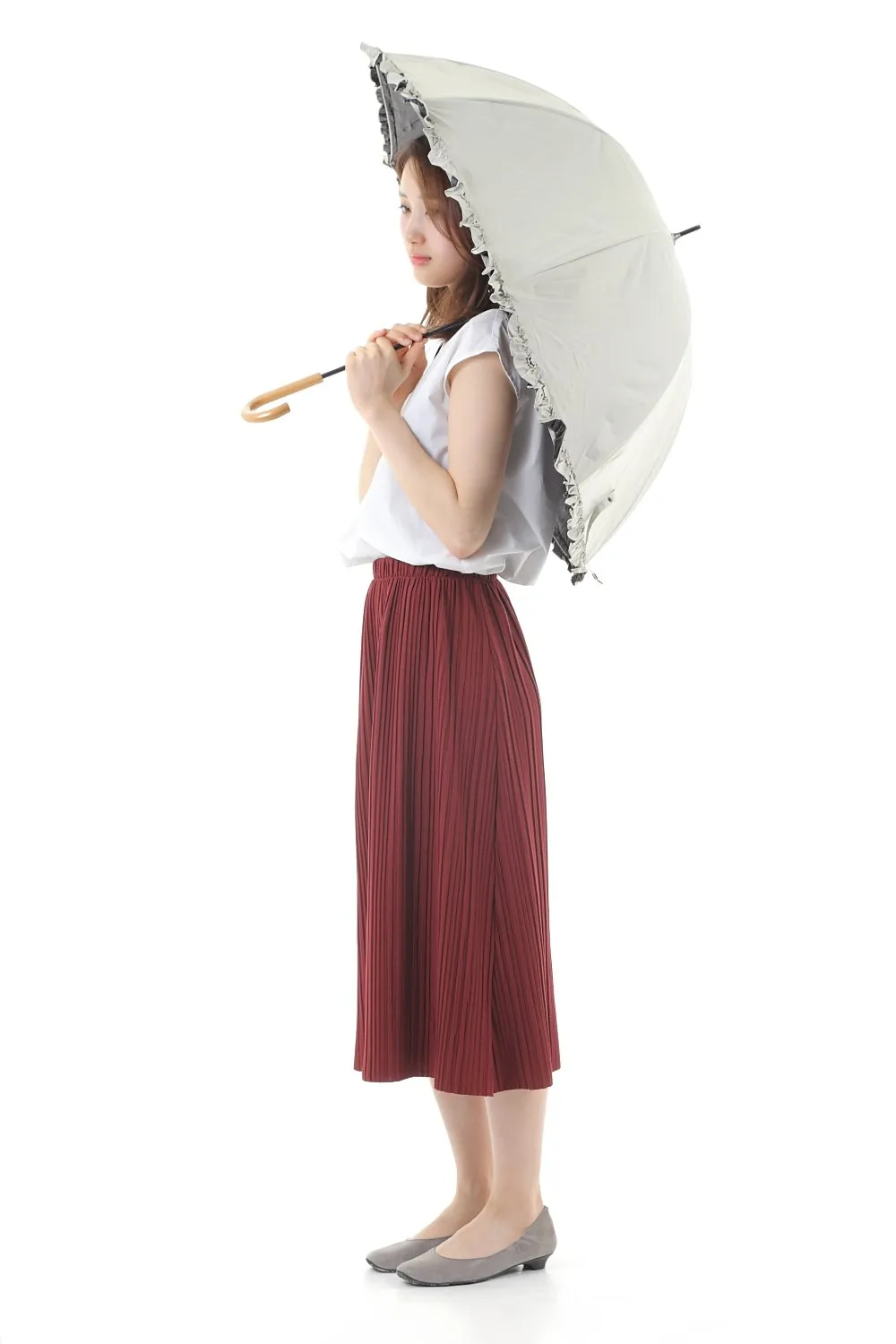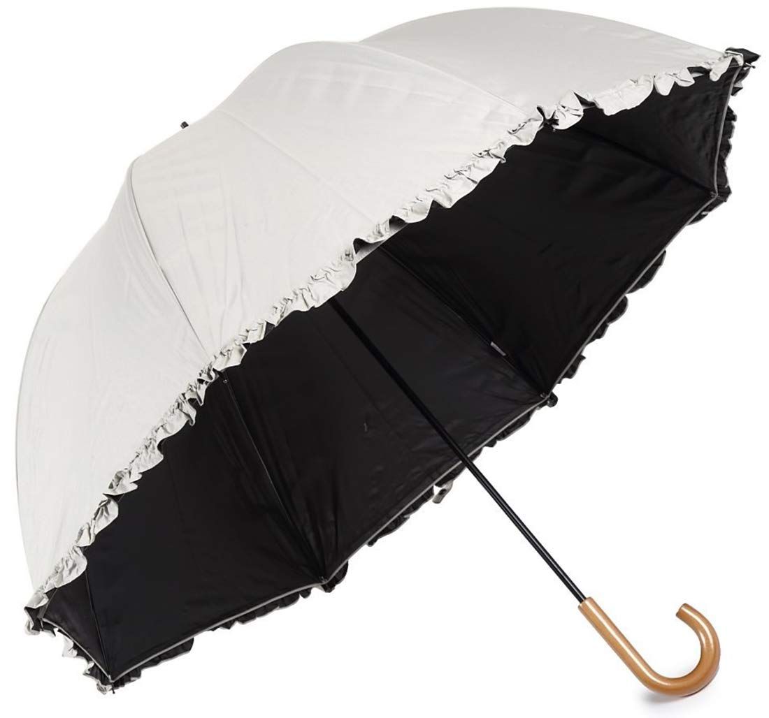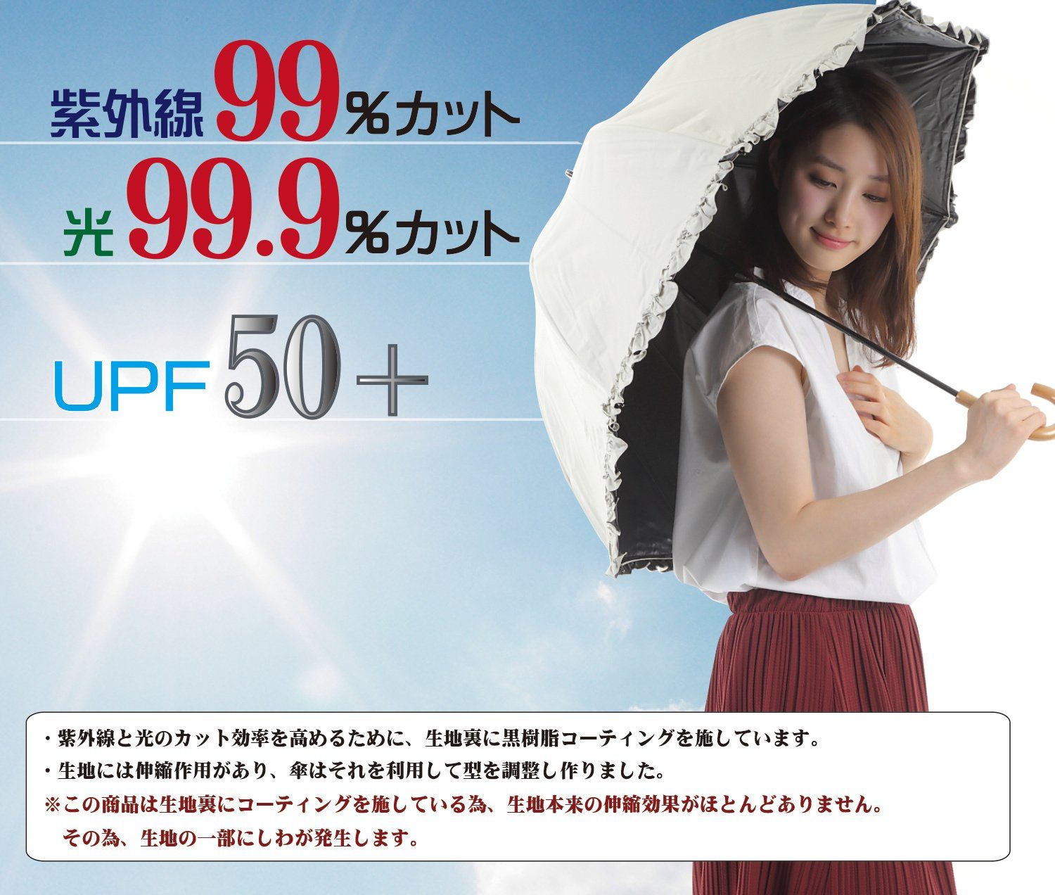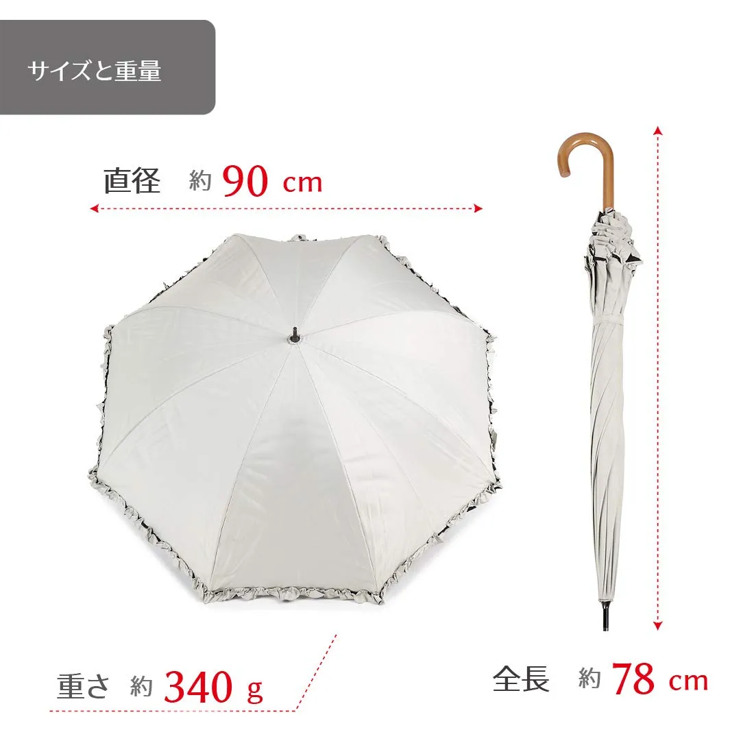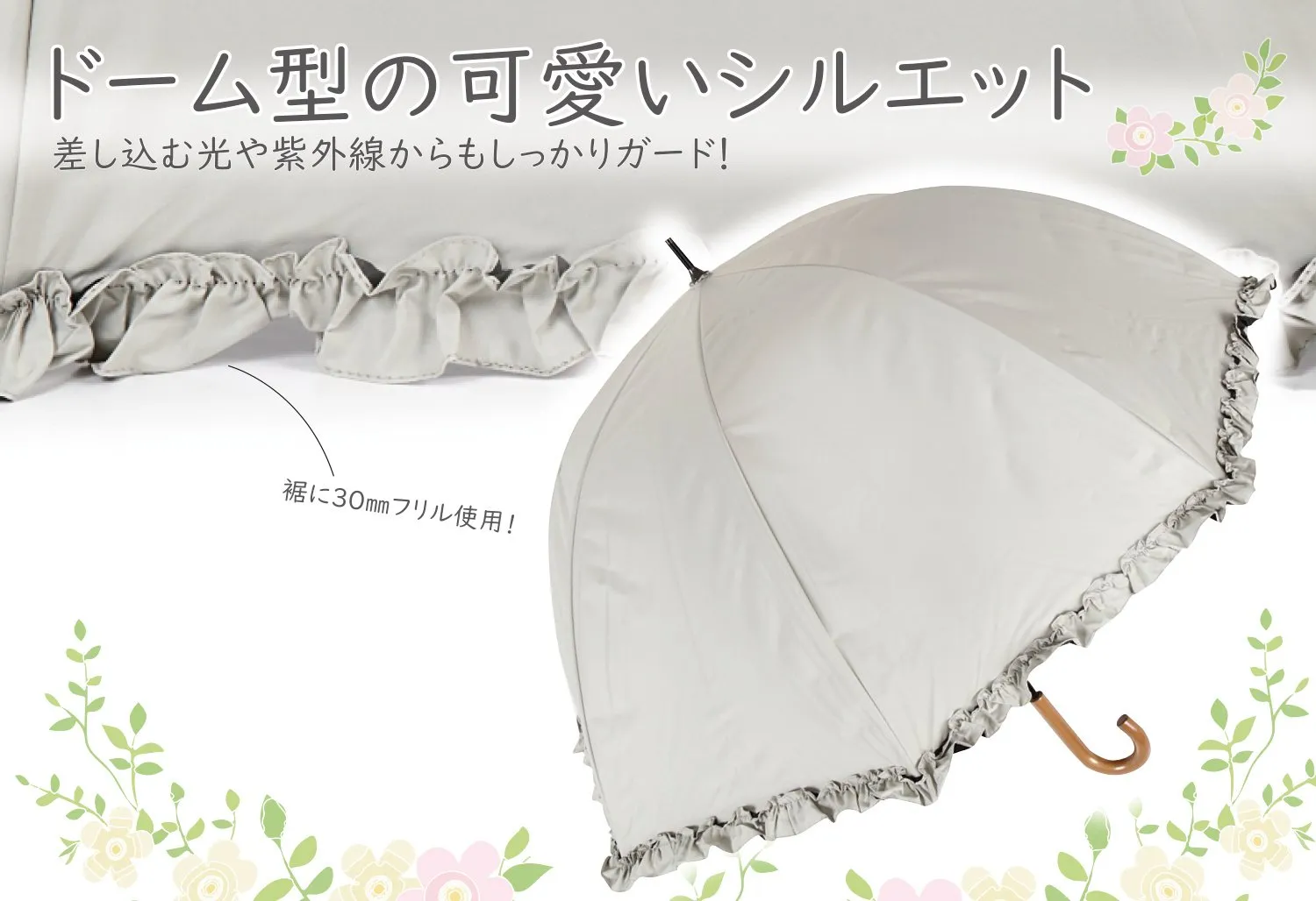 日傘兼用雨傘 レディース 日傘 uvカット 遮光 長傘 遮光率 99.9% 日光を遮断 軽量 Mサイズ 晴雨兼用傘 フリル ドーム型 生地裏コーティング 紫外線遮蔽率99% UPF50+ 60cm アイボリー