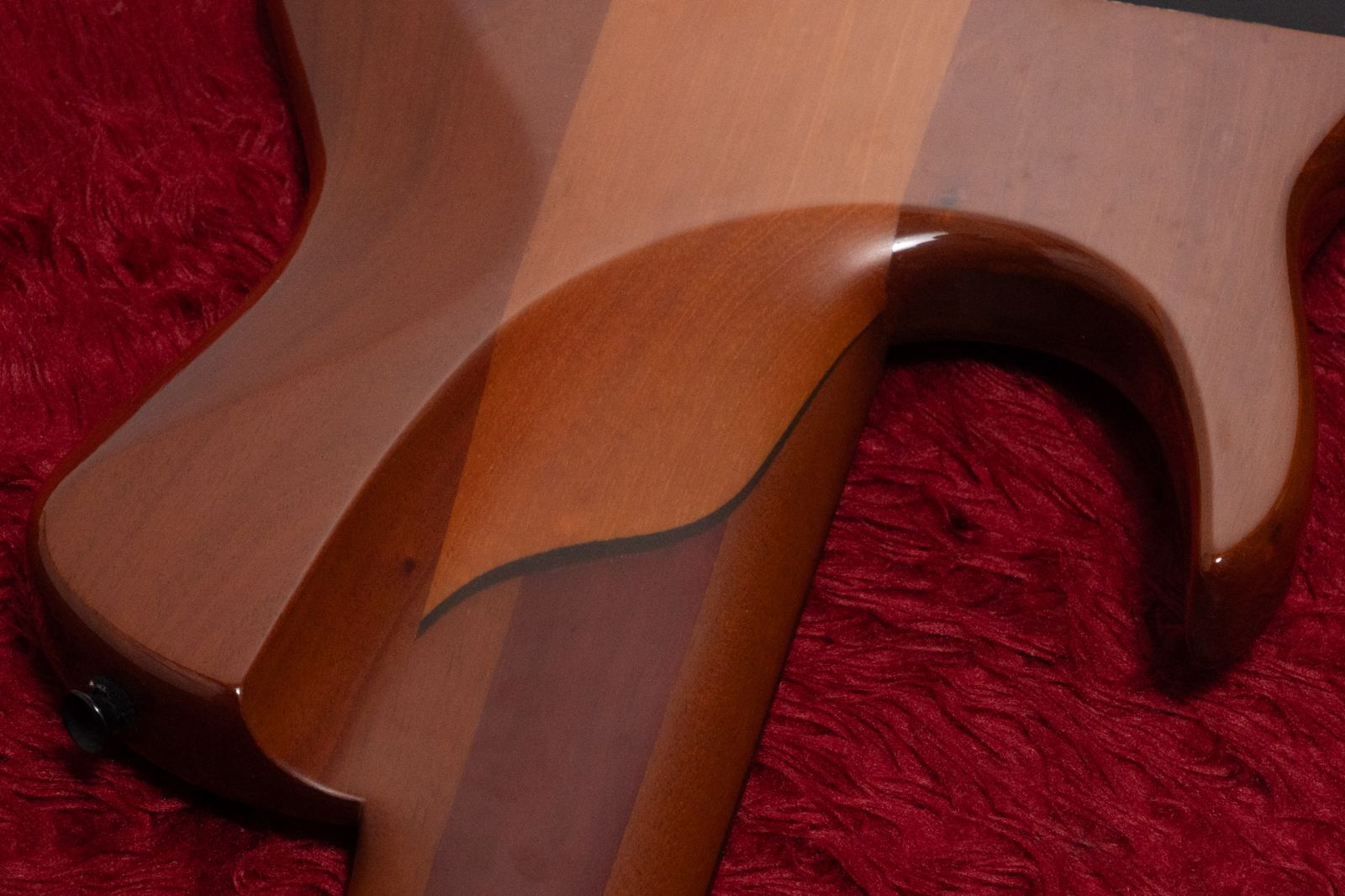 ネックはPurpleheartをセンターに、サイドにはBrazilian Mahoganyが配置されています。