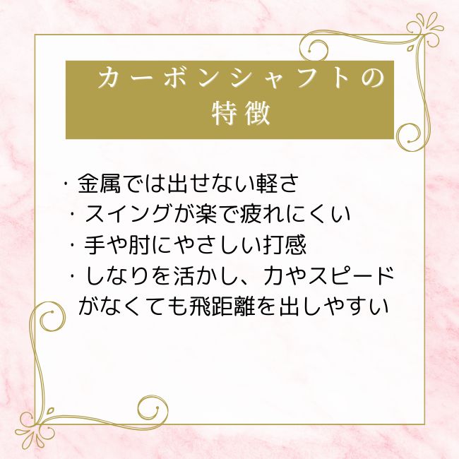 シャフト:高性能カーボン(しなやか・振り抜き重視)