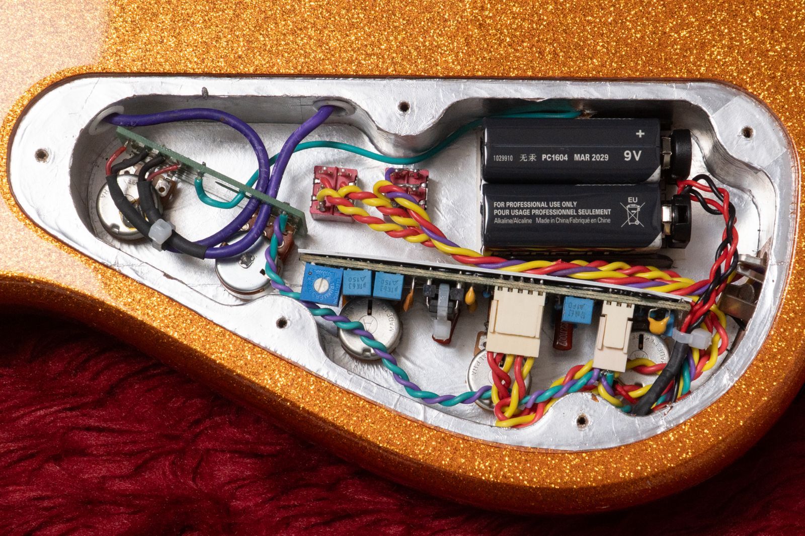 3バンドEQを搭載し、コントロールはボリューム、バランサー、トレブル、ミドル、ベース、プリアンプバイパスsw、ミドルフリーケンシー切り替えsw。