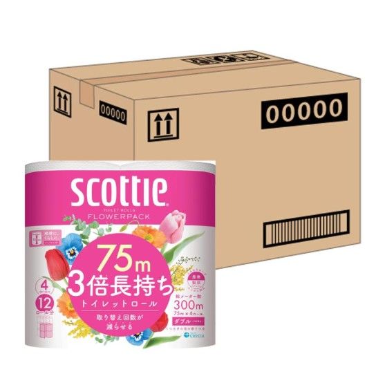 【ケース販売】 スコッティ フラワーパック 3倍長持ち ダブル 4R×12パック 4020260213129