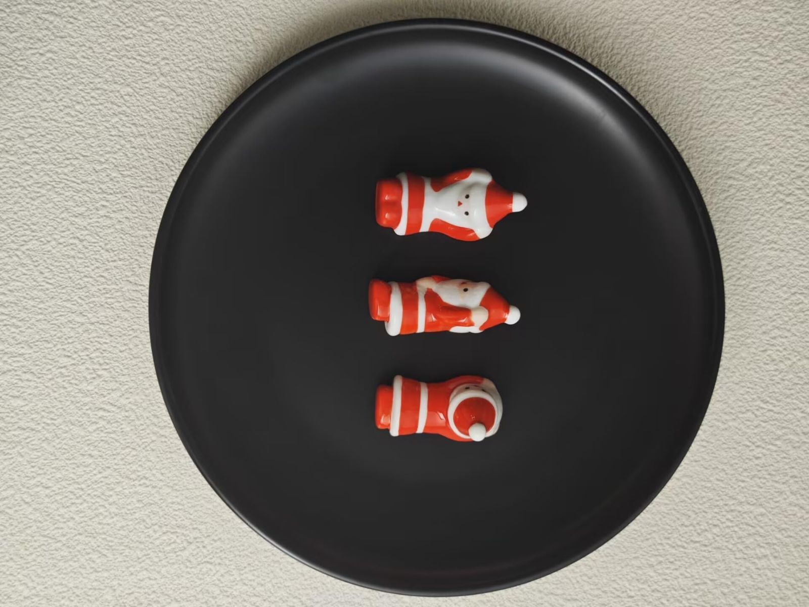 【サンタデザイン】 赤い帽子と白いおひげが特徴の、愛らしいサンタクロースの箸置きです。テーブルに並べるだけで、クリスマス気分がぐっと高まります。クリスマスパーティーや家族の集まりで使えば、みんなの会話も弾むことでしょう。