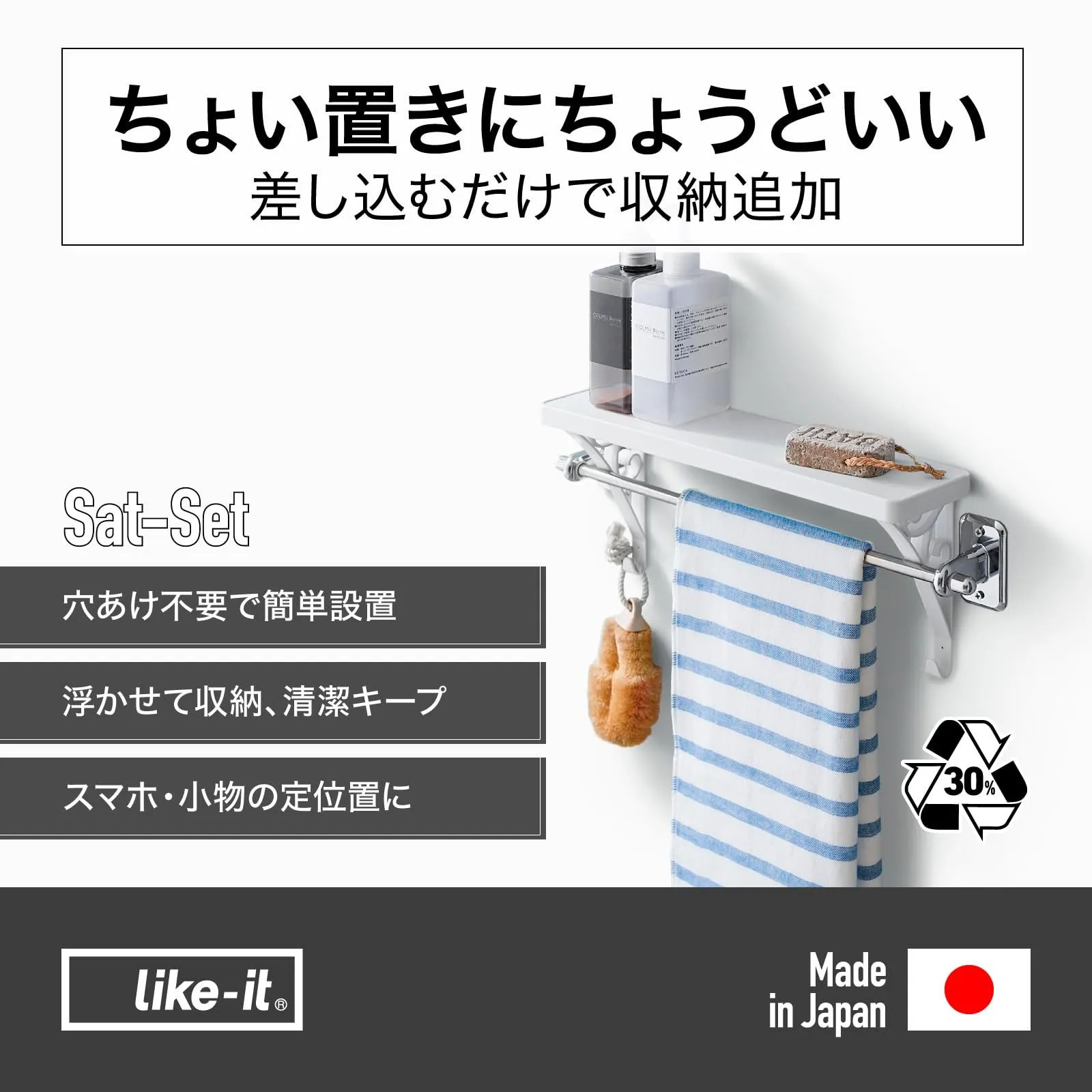 ライクイット (like-it) サニタリー収納 タオル掛け 再生材30%使用 ラック 取り付け簡単 小物置き 約W35xD9xH15.5cm 日本製 タオルバーシェルフ(スクエア) ホワイト SSR-01
