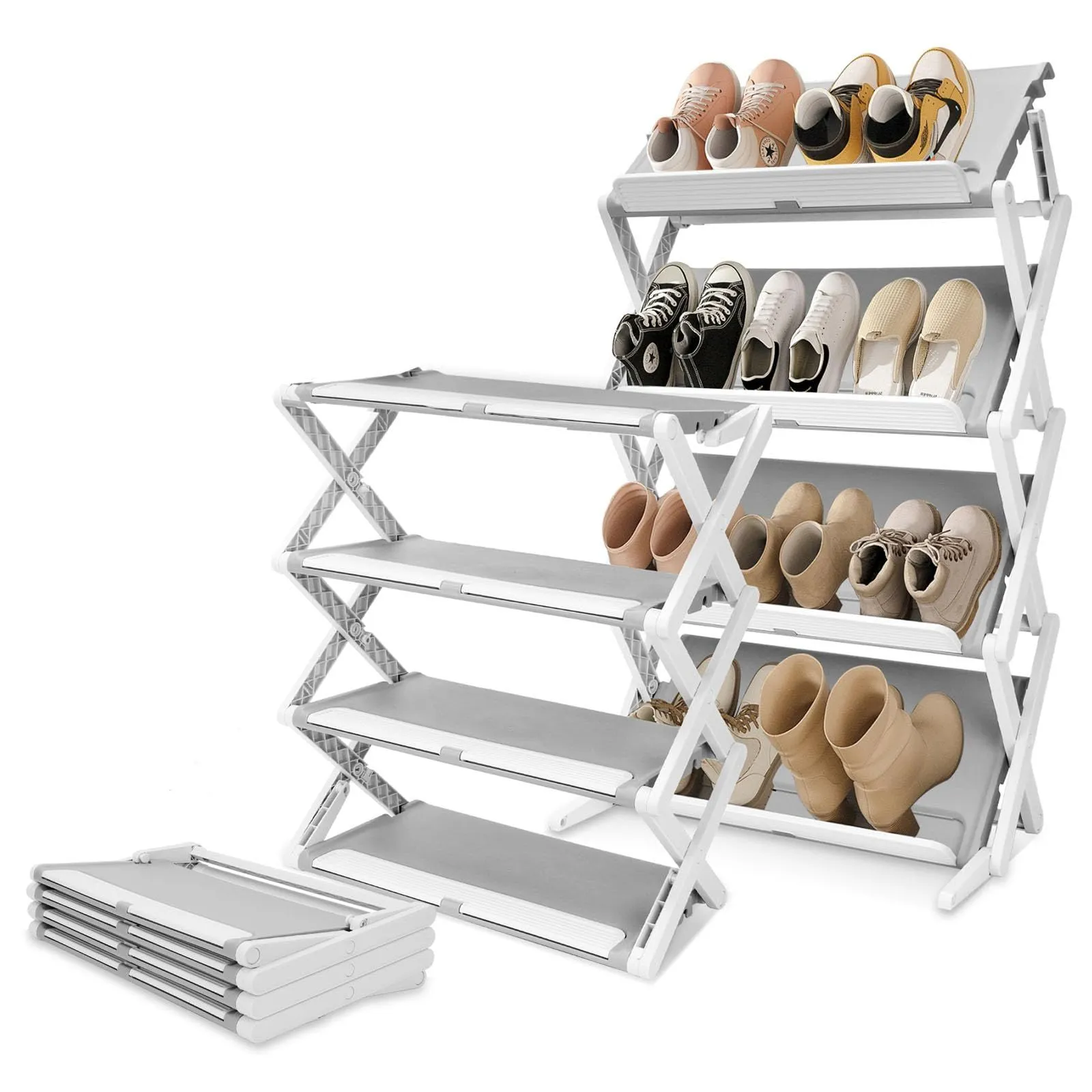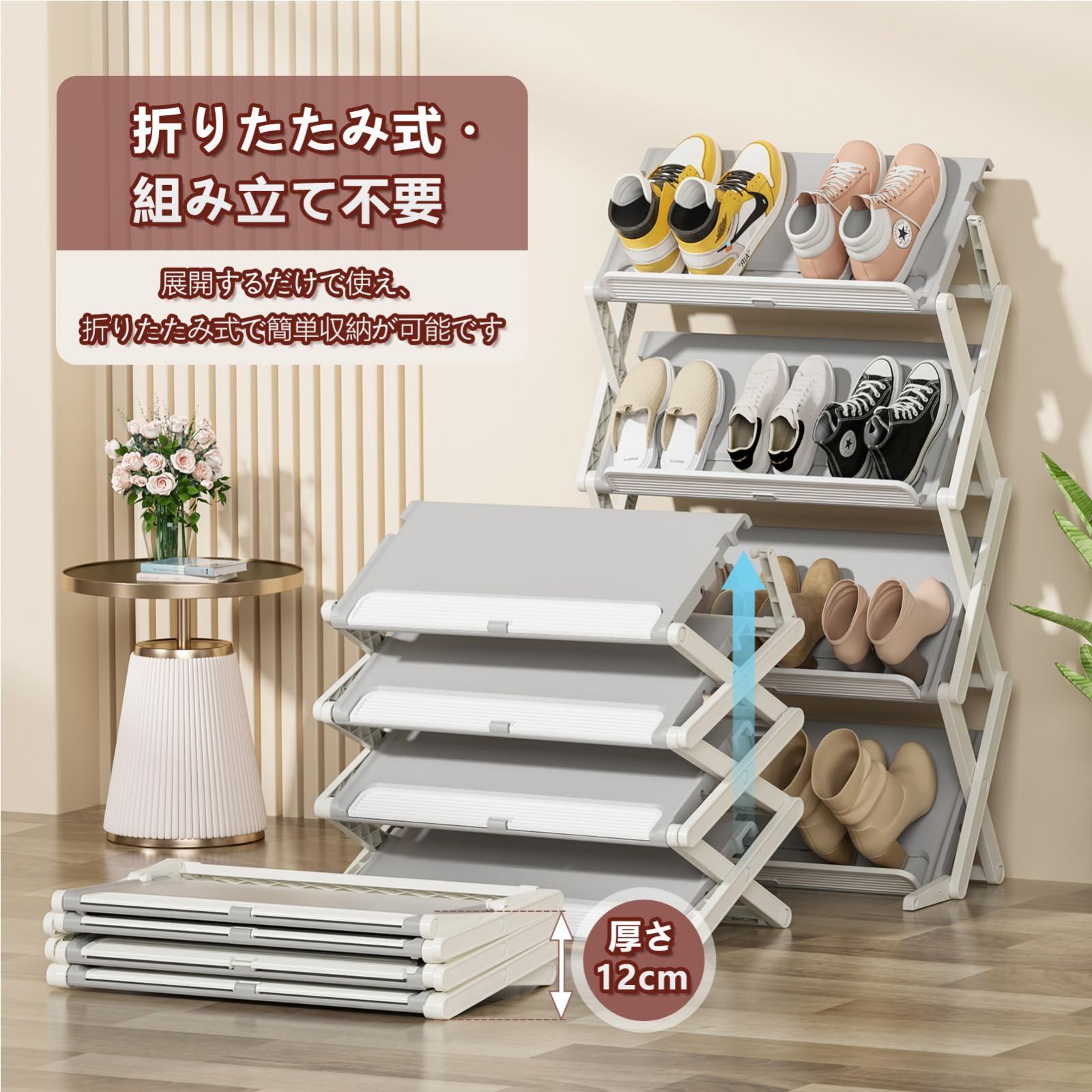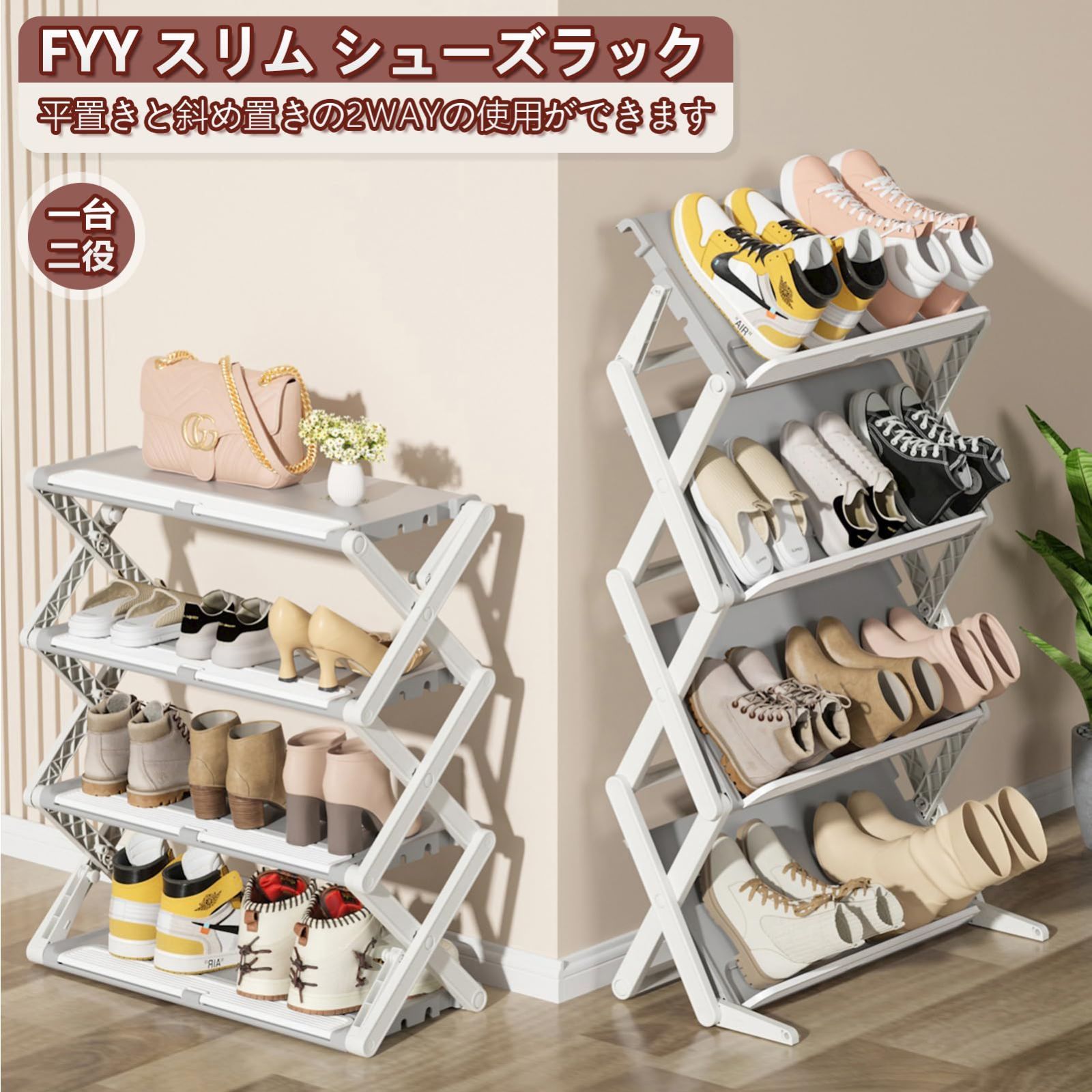 FYY シューズラック 省スペース スリム 靴棚 折りたたみ式 3段/4段 3WAY 斜め置き 平置き 靴箱 玄関 コンパクト 下駄箱 靴収納 靴ラック 廊下 シンプル 幅55.5cm 大容量 収納棚 靴置き 狭い 玄関 シューズケース スリッパラック 軽量 北欧 おしゃれ グレー(4段)