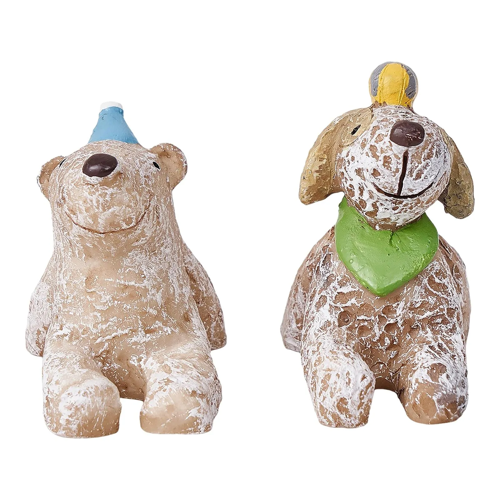 可愛い動物マスコット置物 - インテリアにぴったりの小物 コンコンブル デコレ 雑貨 アニマルオブジェ ガーデニング 雑貨 (クマと子犬)