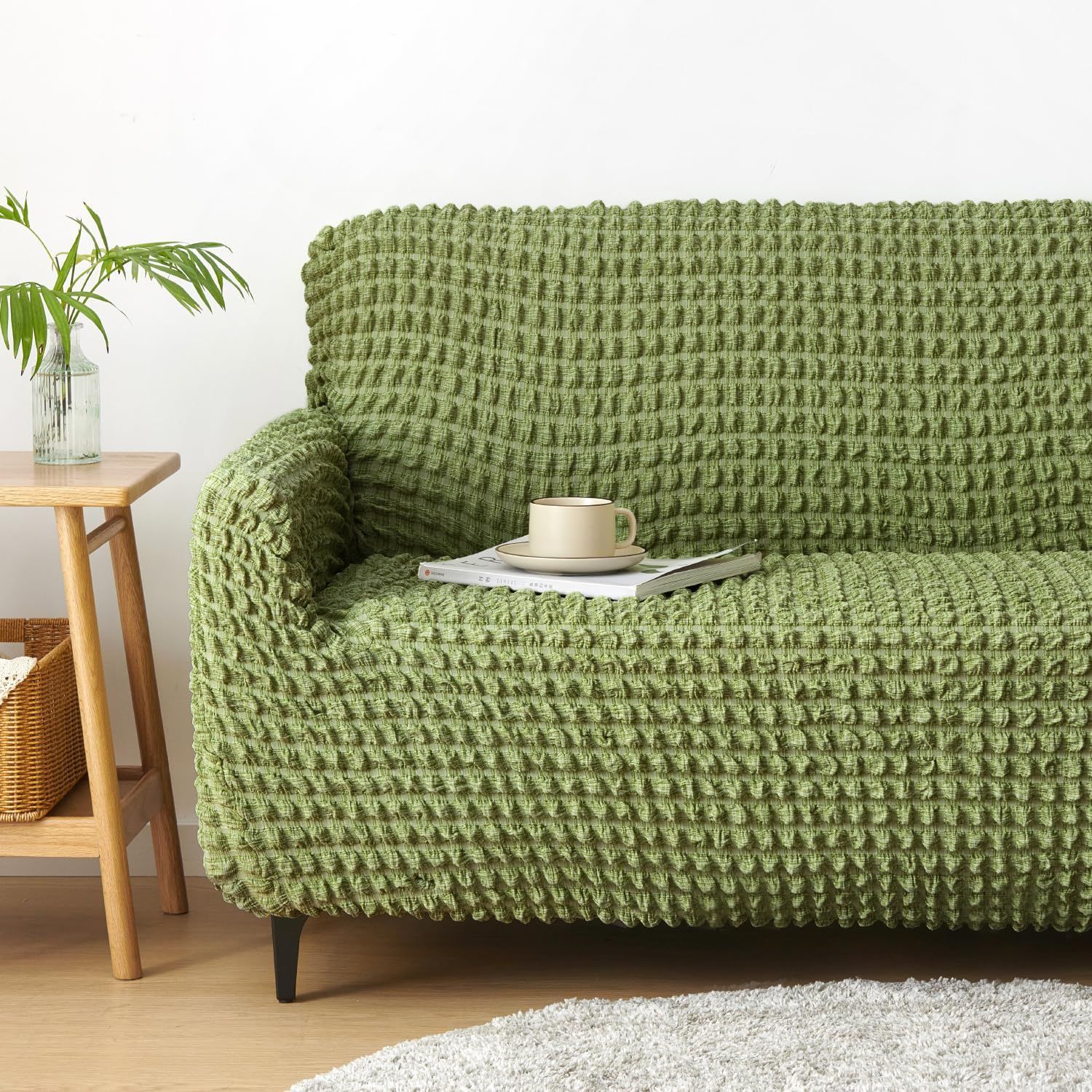 クモリ(Kumori) ソファーカバー 2人掛け 肘付き フィットタイプ 簡単装着 洗える ズレにくい 犬猫対策 汚れ防止 傷防止 模様替え 滑り止め 縦横ストレッチ 伸縮素材 柔らかい ソファカバー マルチカバー 保護カバー 北欧風 おしゃれ かわいい 四季通用 ポコポコ 厚手 (チェック柄・モスグリーン)