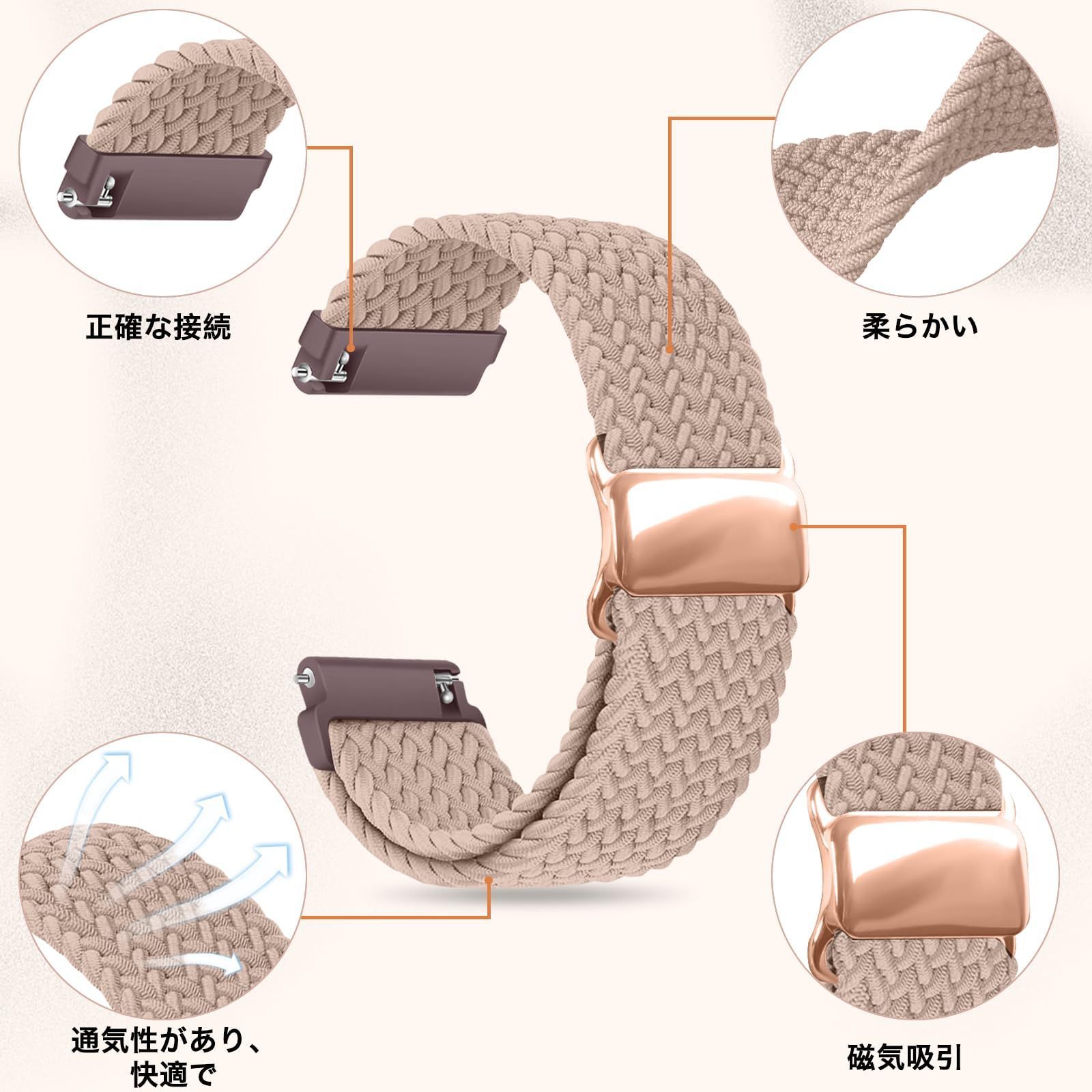 [CeiBand] バンド 20mm 対応 交換ベルト 腕時計バンド 20mm 22mm 弾力性 ベルト ナイロン 編み込み 磁気吸着式バックル スポーツバンド メンズ レディース 時計バンド スマートウォッチバンド 伸縮性 通気性 柔軟性 クイックリリース 腕時計ベルト -(ミルクティー色 20mm)