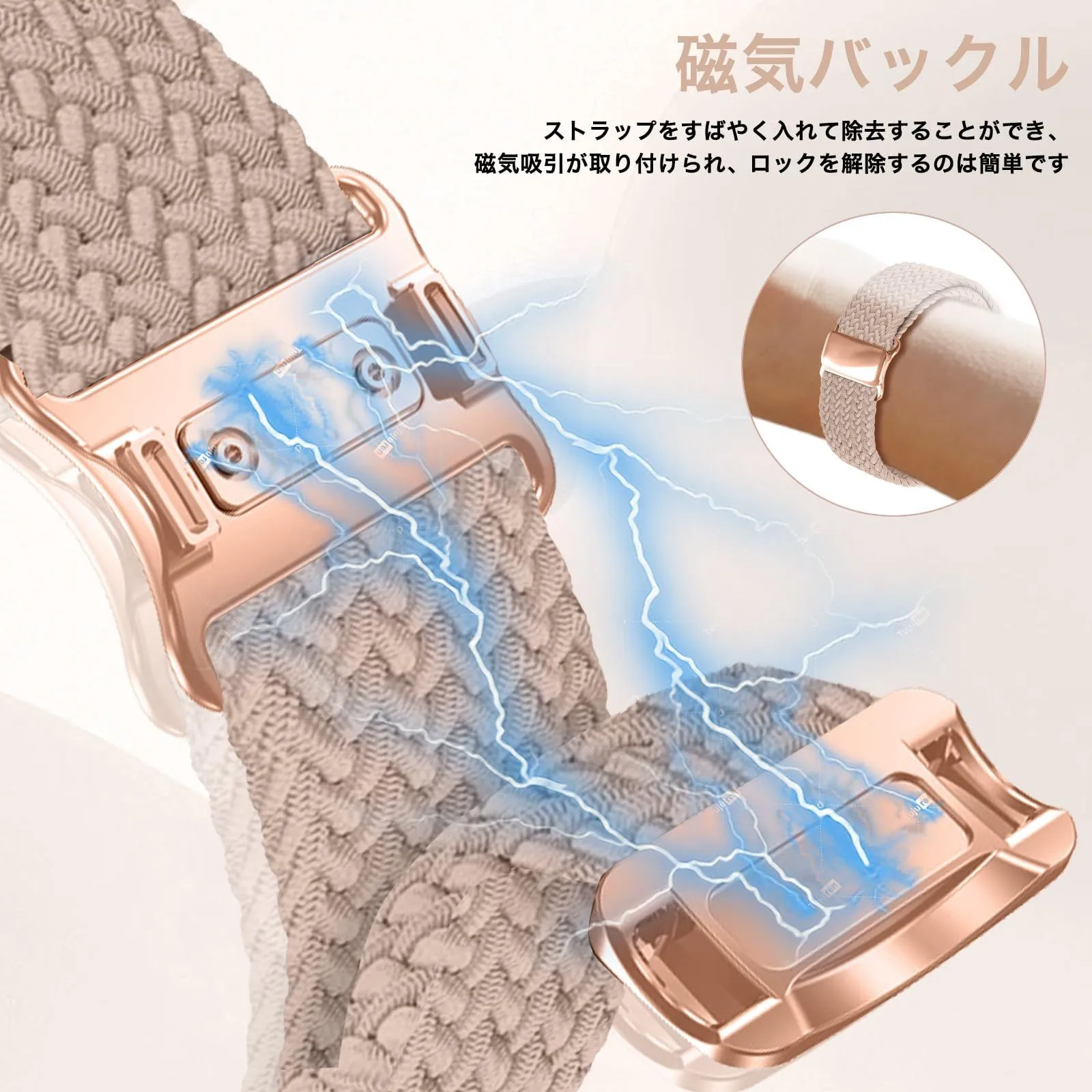 【便利なマグネット式バックル】マグネットタイプのバックルで、ワンタッチでバンドを装着できて大変便利です。着脱が面倒って感じる方にとっておきのバンドです。最初に自分に合った長さを調整してしまえばマグネットの位置が固定され、次回の着脱は再びに位置を調整する面倒がないで、忙しい朝や急な外出で時間を節約できます。